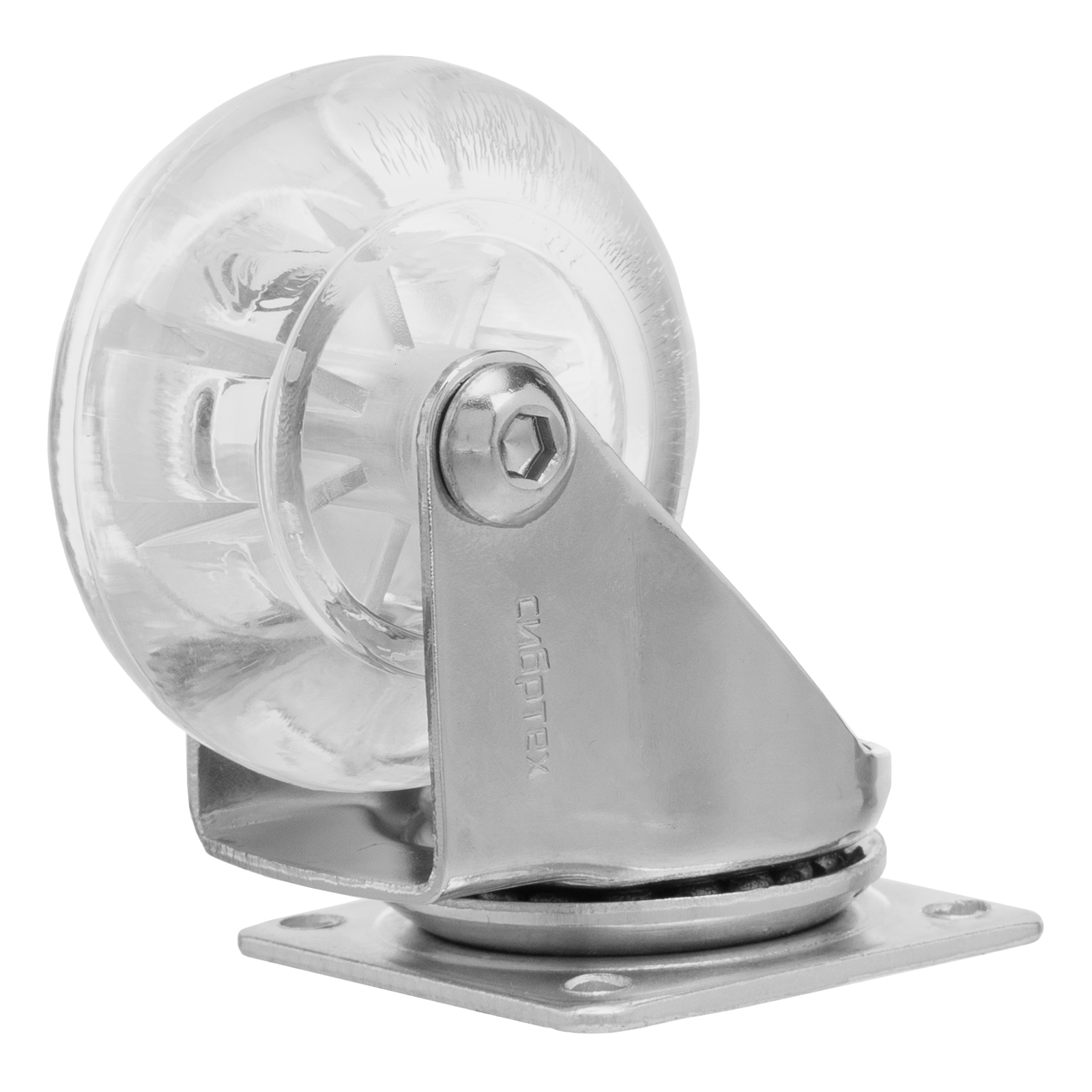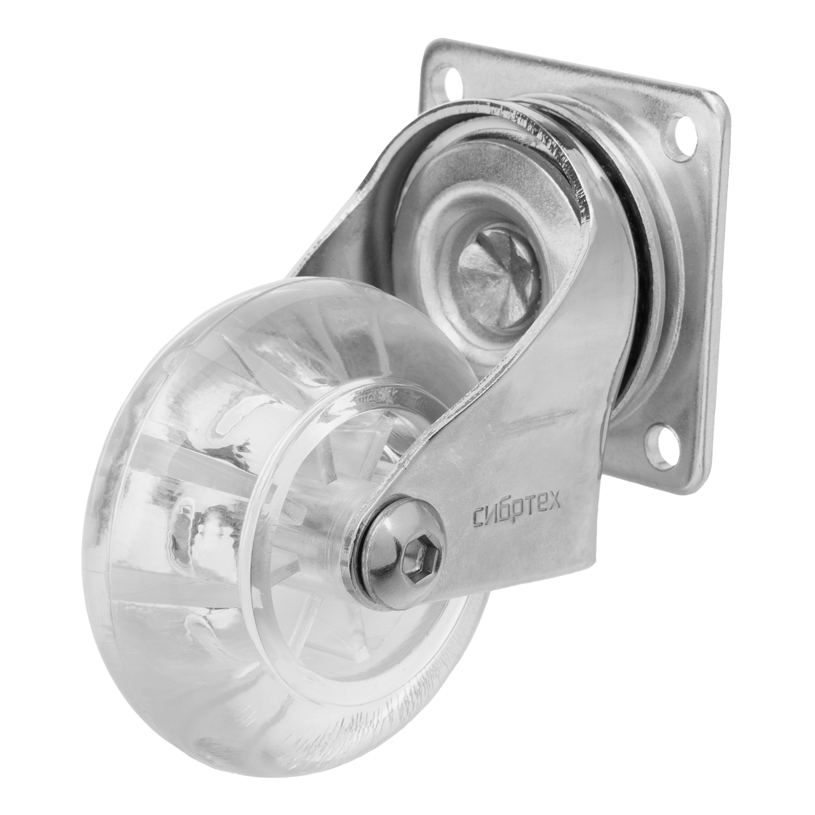 Колесо ПУ прозрачное поворотное d-50 мм, крепление платформенное Сибртех в Краснодаре