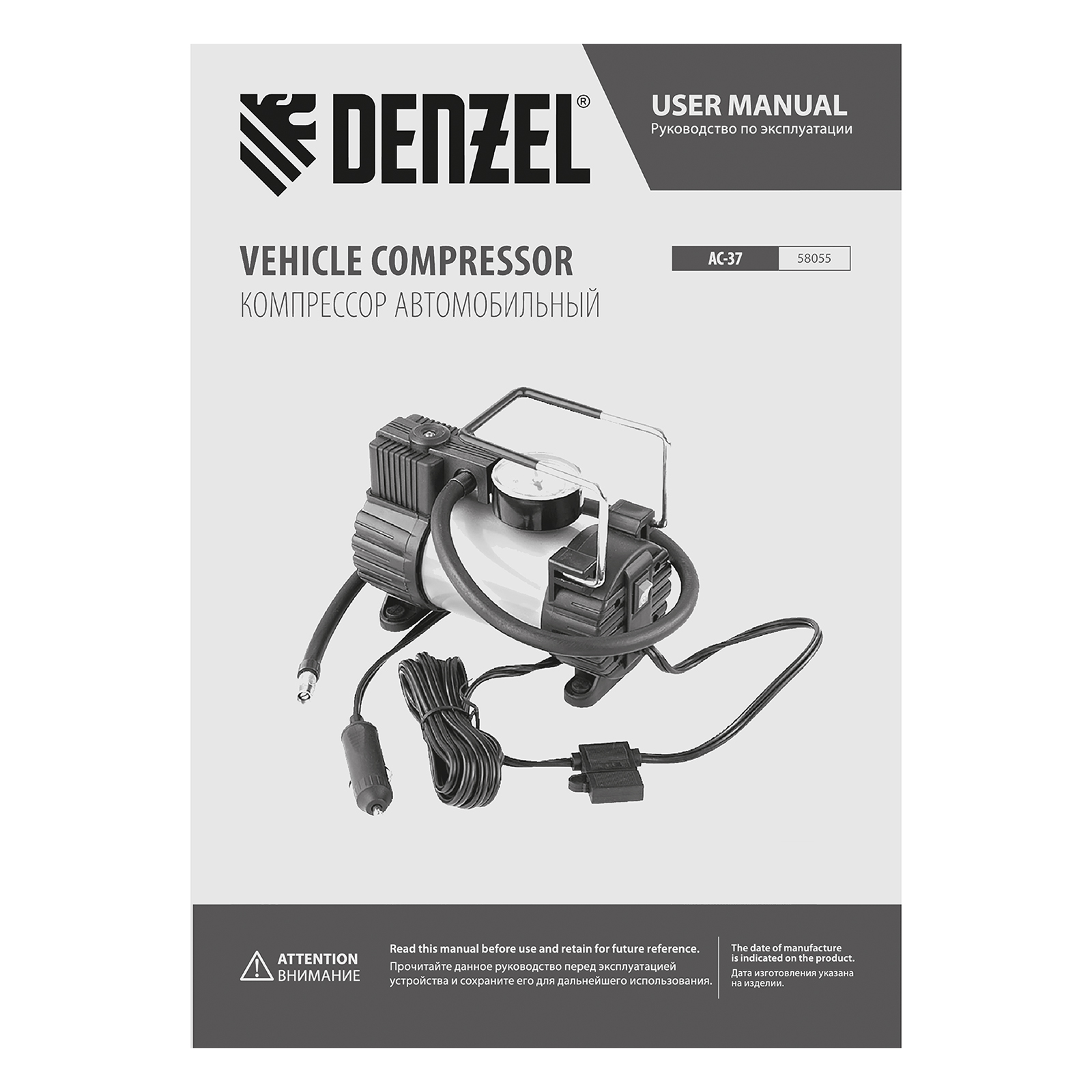 Автомобильный компрессор Denzel AC-37 58055 с автомобильным предохранителем работает от бортовой сети 12 В, обеспечивает давление 7 атмосфер и производительность 37 л/мин. Служит для накачивания шин, резиновых матрацев, надувных лодок и других изделий — для этого предусмотрены различные насадки. Компрессор пригодится в гараже, будет полезен в дальней поездке, а также во время отдыха на природе.