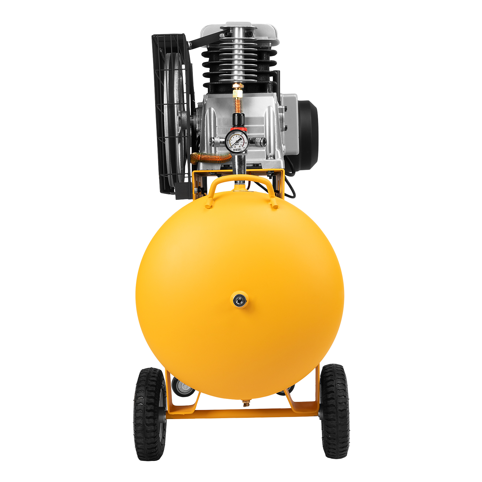 - Маневренность — 2 пары колес позволяют легко перемещать компрессор и разворачивать его на месте.