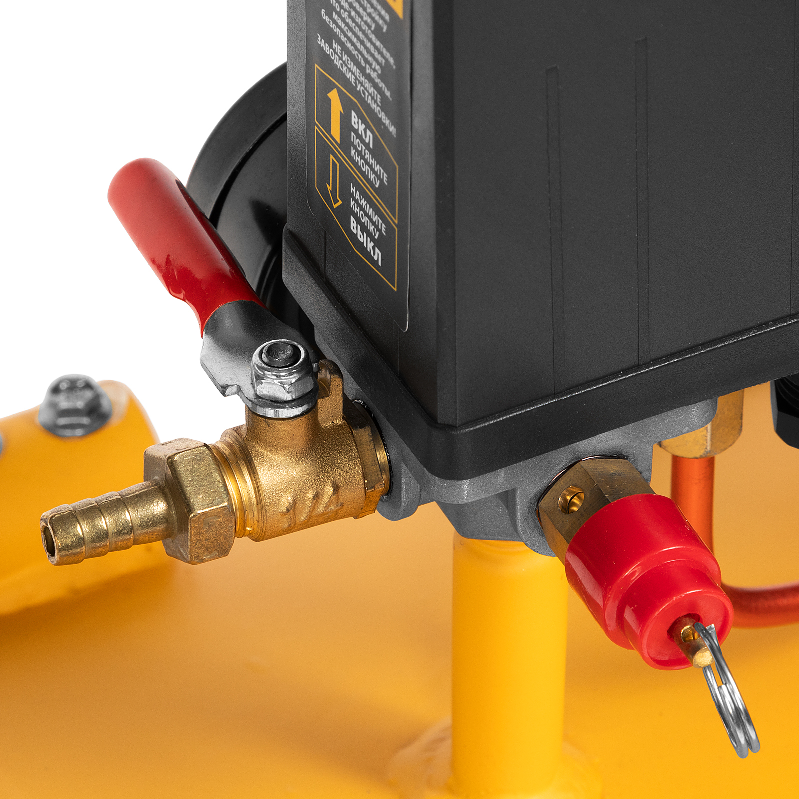 - Клапан для слива конденсата — скопившаяся за день влага и оставшийся воздух быстро удаляются из ресивера, что обеспечивает защиту от коррозии.