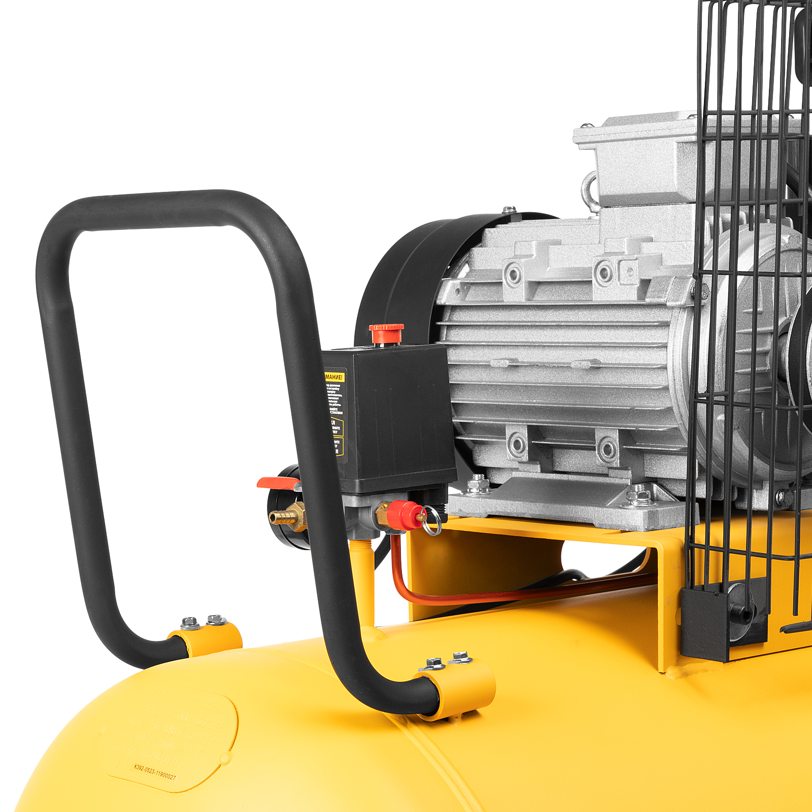 - Удобная транспортировка — прочная ручка выдерживает вес компрессора и позволяет без труда загружать его в машину или перемещать в нужное место.