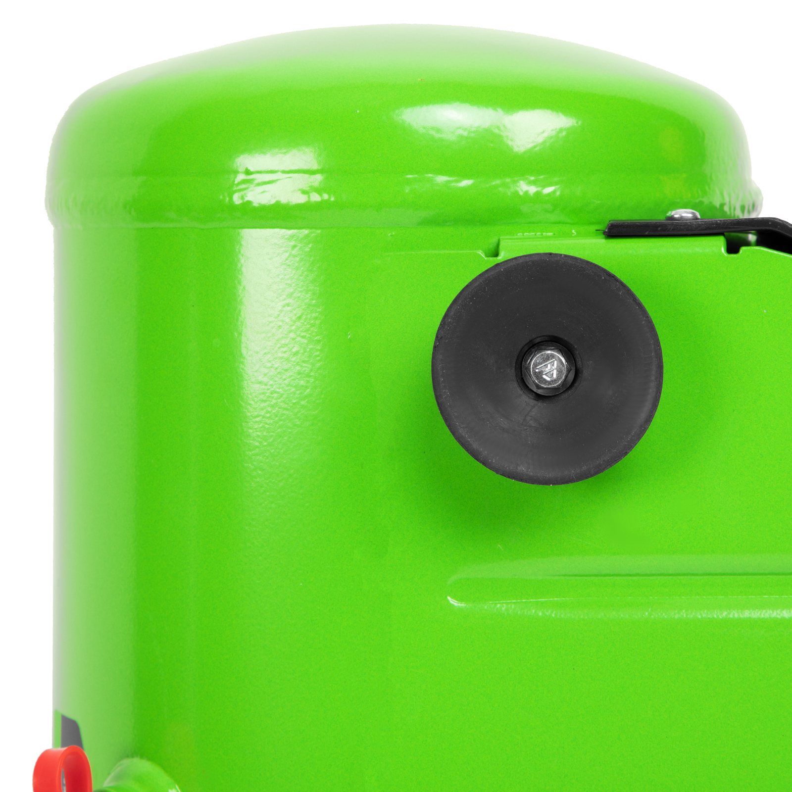 - Контроль давления в ресивере — в верхней части корпуса расположен манометр, для считывания показателей не нужно наклоняться.