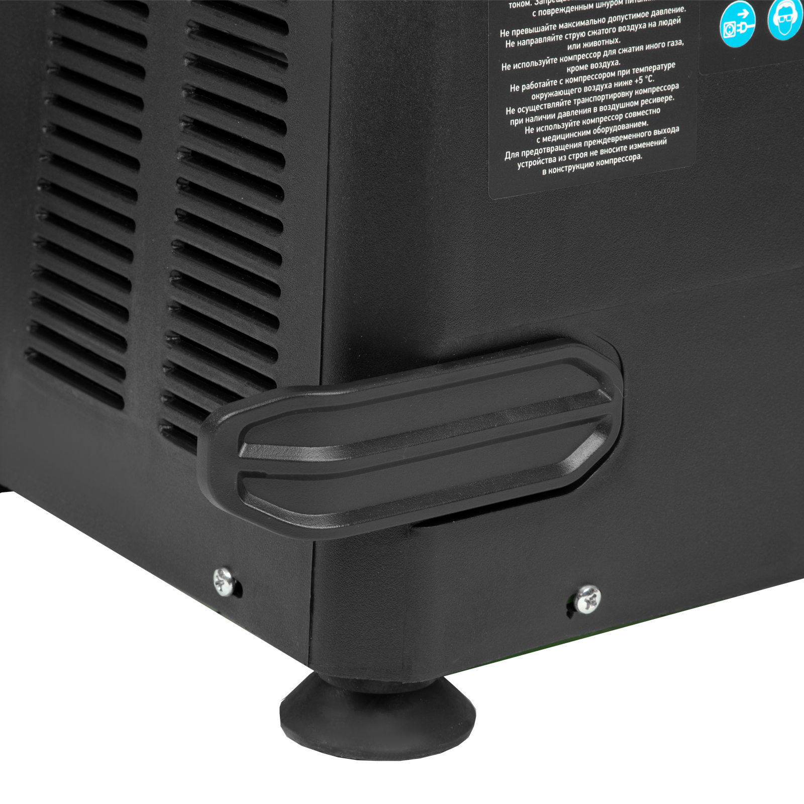 - Продуманная конструкция — виброгасящие опоры обеспечивают устойчивость компрессора во время работы.