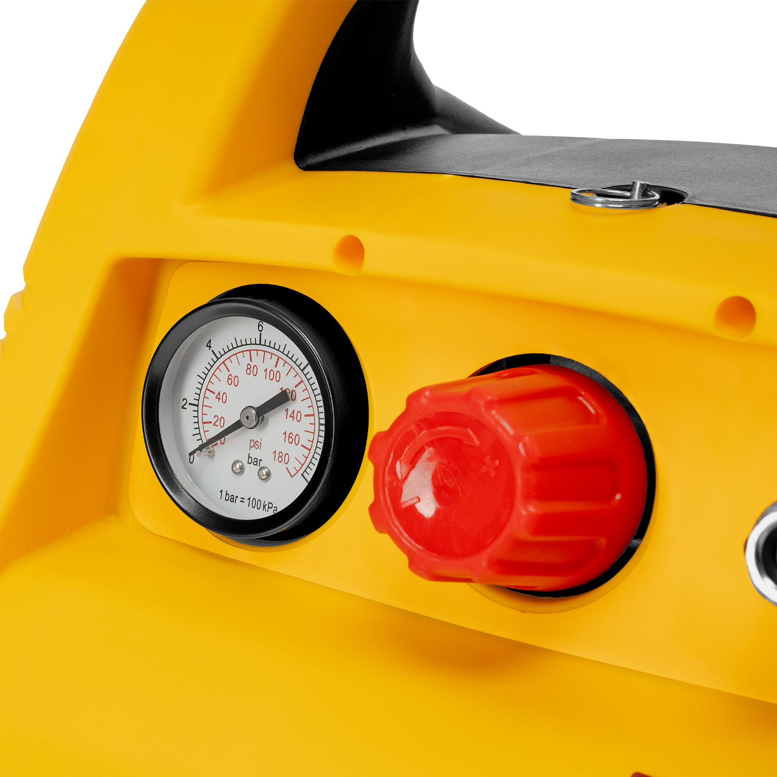 - Оснащение манометром — пользователь может легко контролировать давление сжатого воздуха в ресивере.