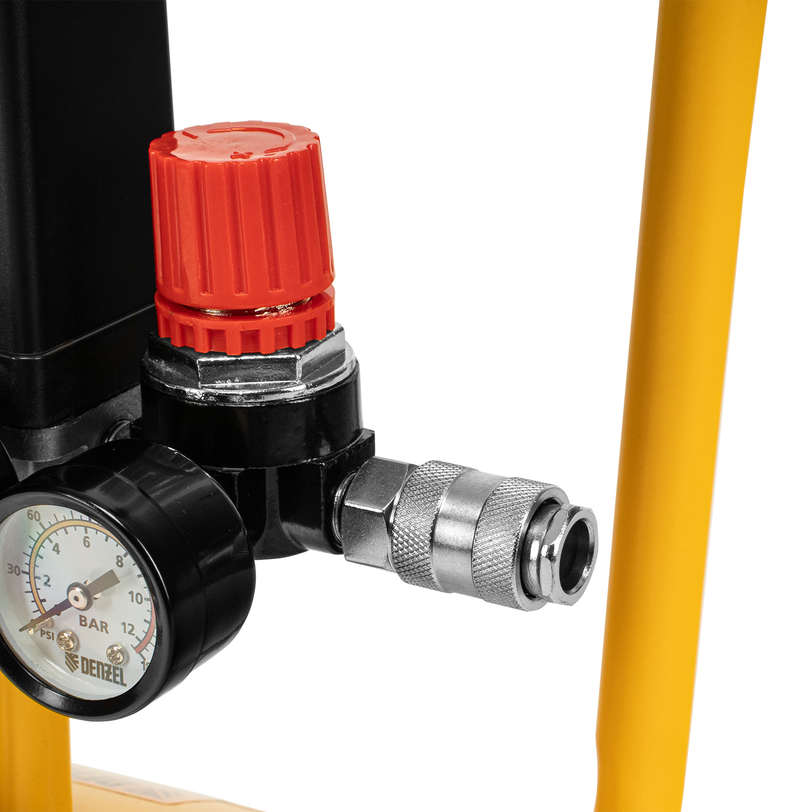 - Контроль рабочих параметров — давление в ресивере и выходной магистрали легко отслеживать благодаря 2 манометрам.