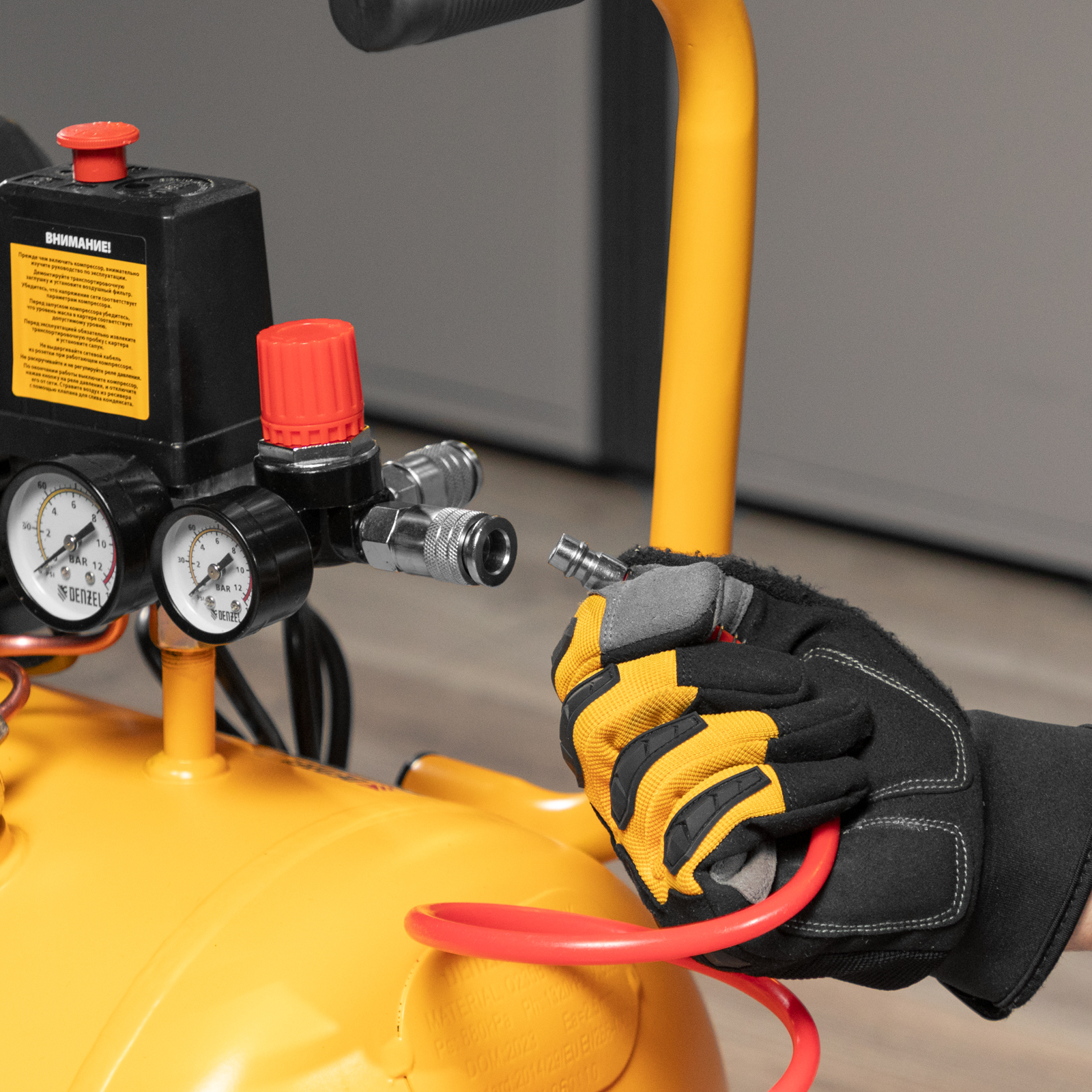 - Простая подготовка к работе — быстросъемные коннекторы рапид (Евро) значительно облегчают процесс подключения пневмоинструмента к компрессору.
