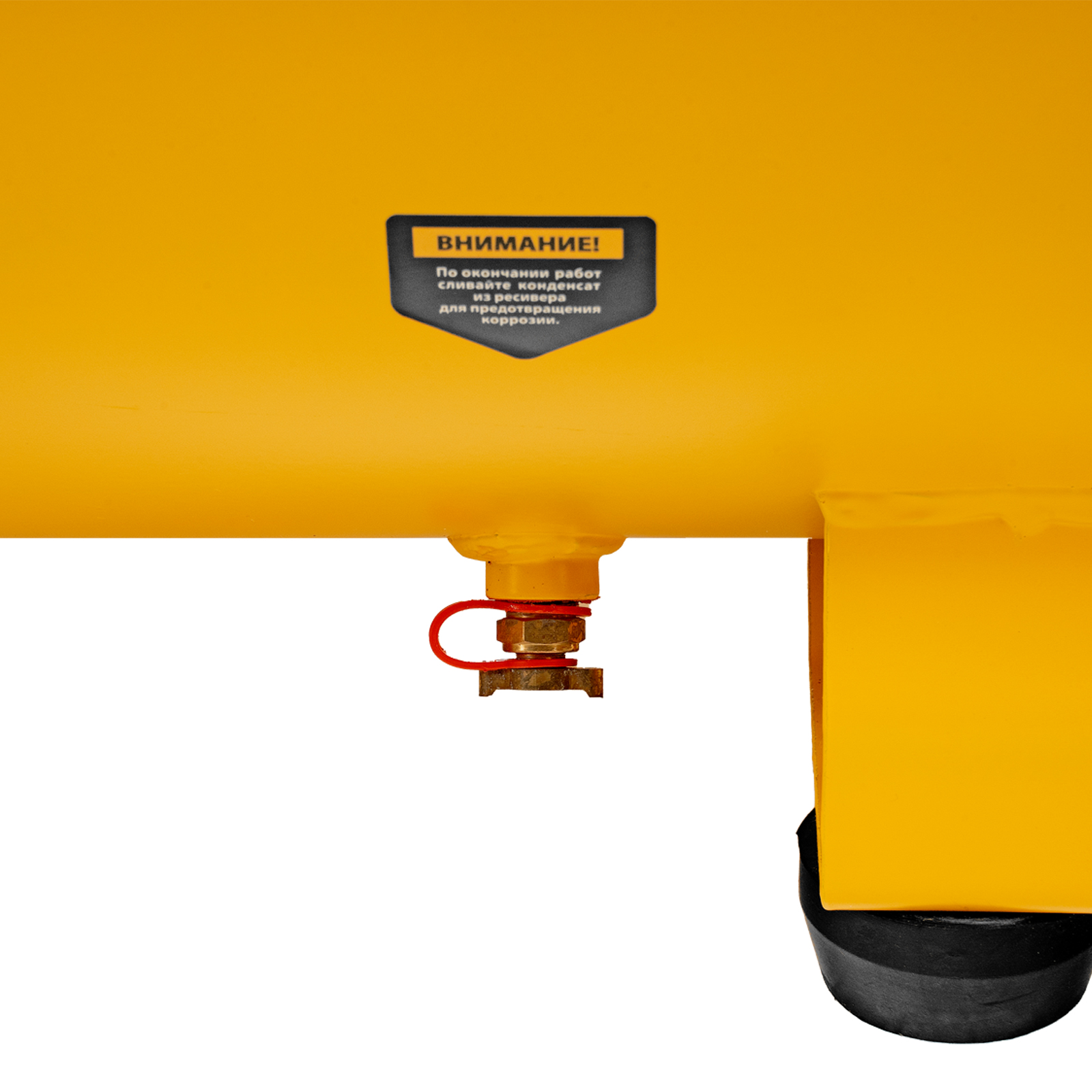 - Быстрое удаление влаги — сливная пробка со специальными ушками легко откручивается и закручивается, что упрощает слив конденсата после окончания работы.