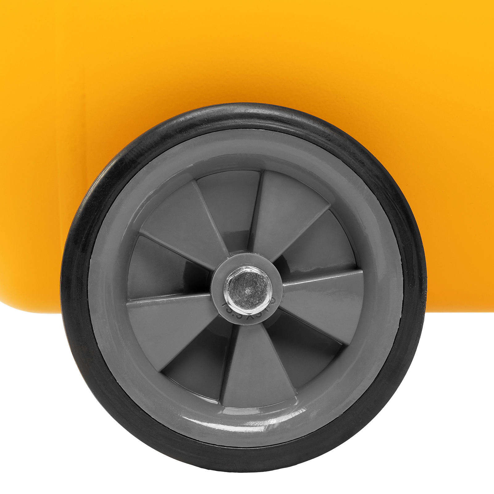 - Мобильность — транспортировочные колеса позволяют легко перемещать компрессор по рабочей площадке.