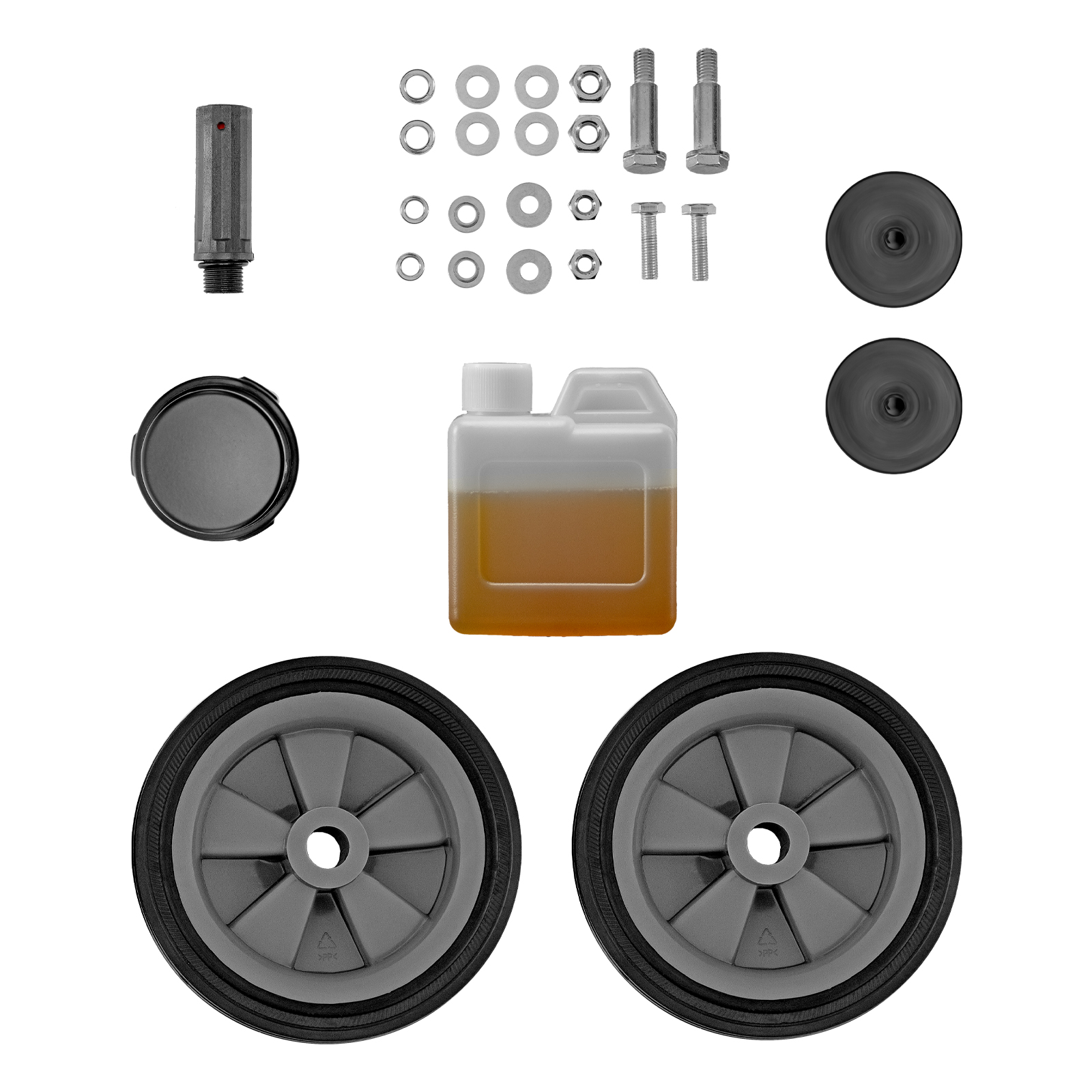 Компрессор - 1 штКолесо с крепежом - 2 штВиброопора с крепежом - 2 штВоздушный фильтр - 1 штМасло компрессорное DAB 40 - 180 млИнструкция по эксплуатации с гарантийным талоном - 1 шт |