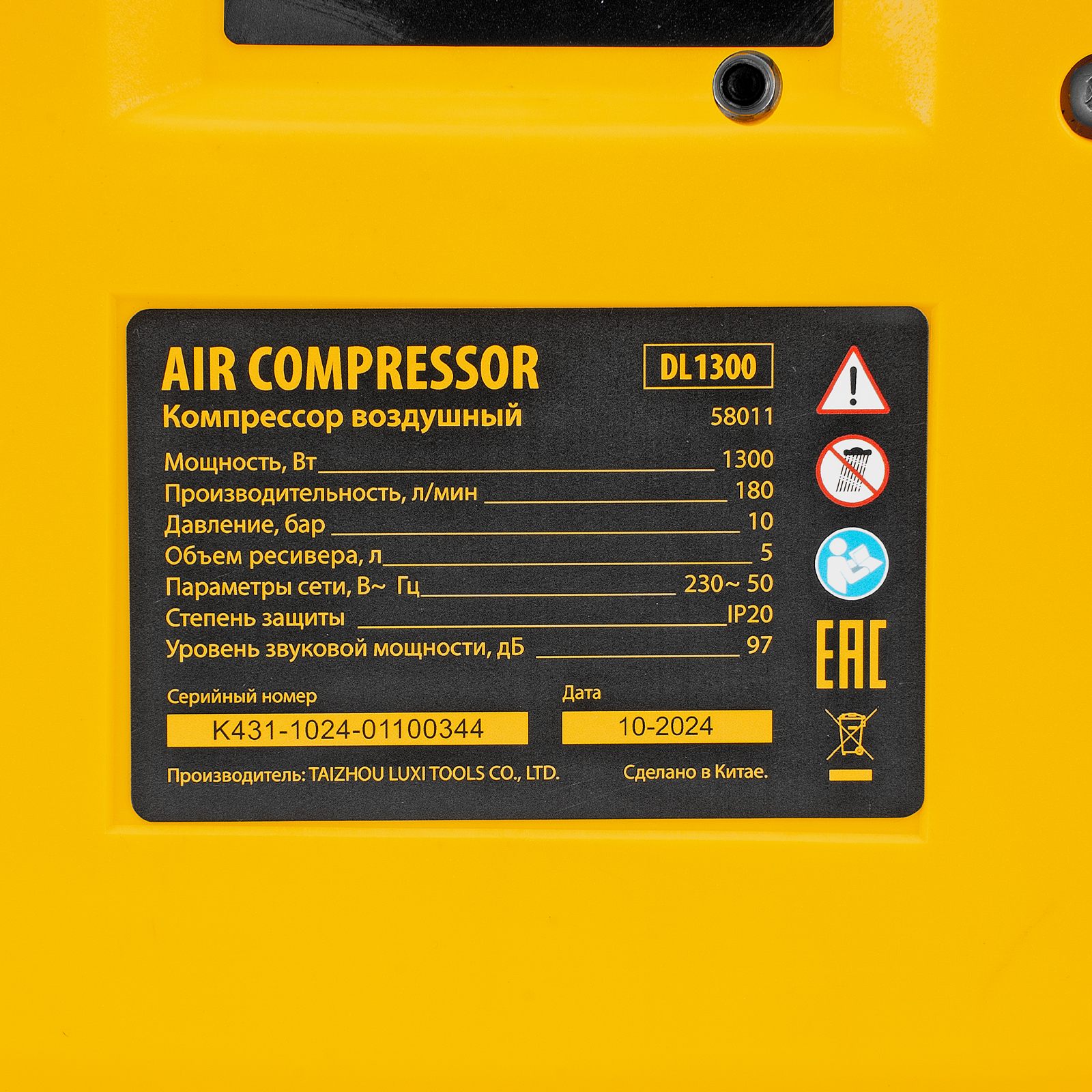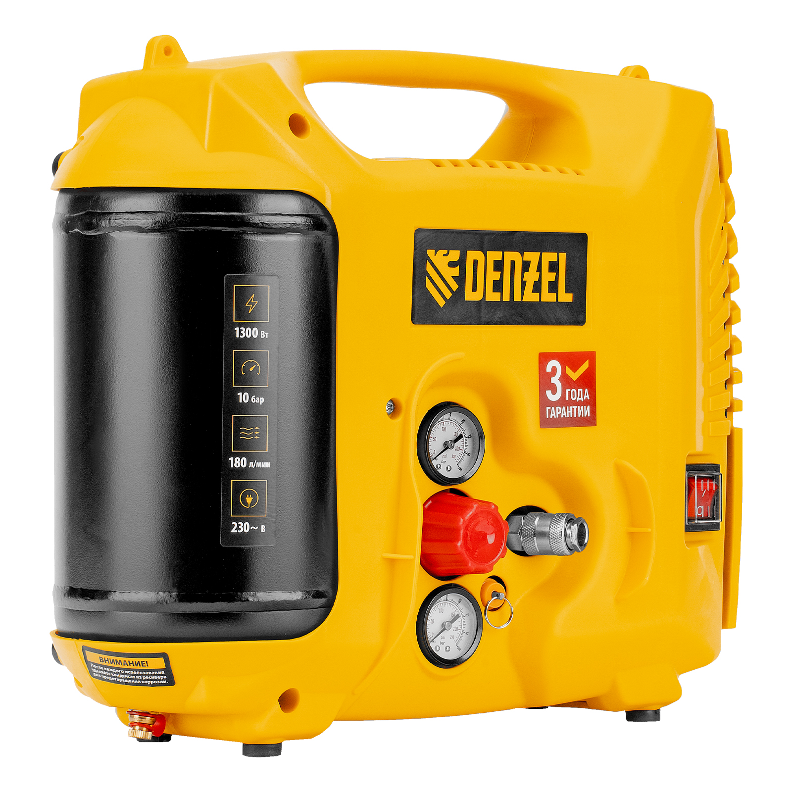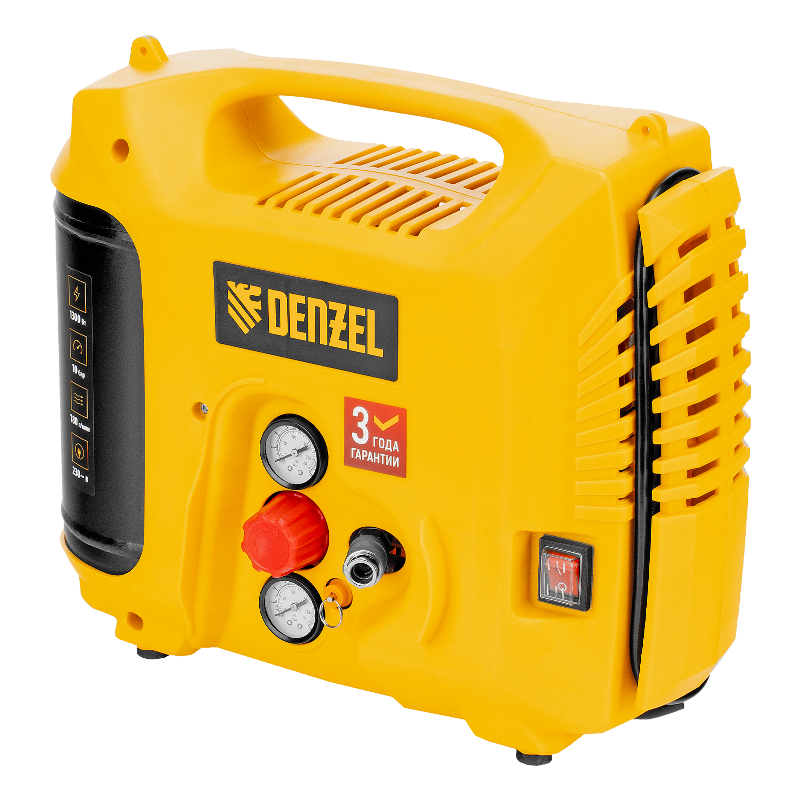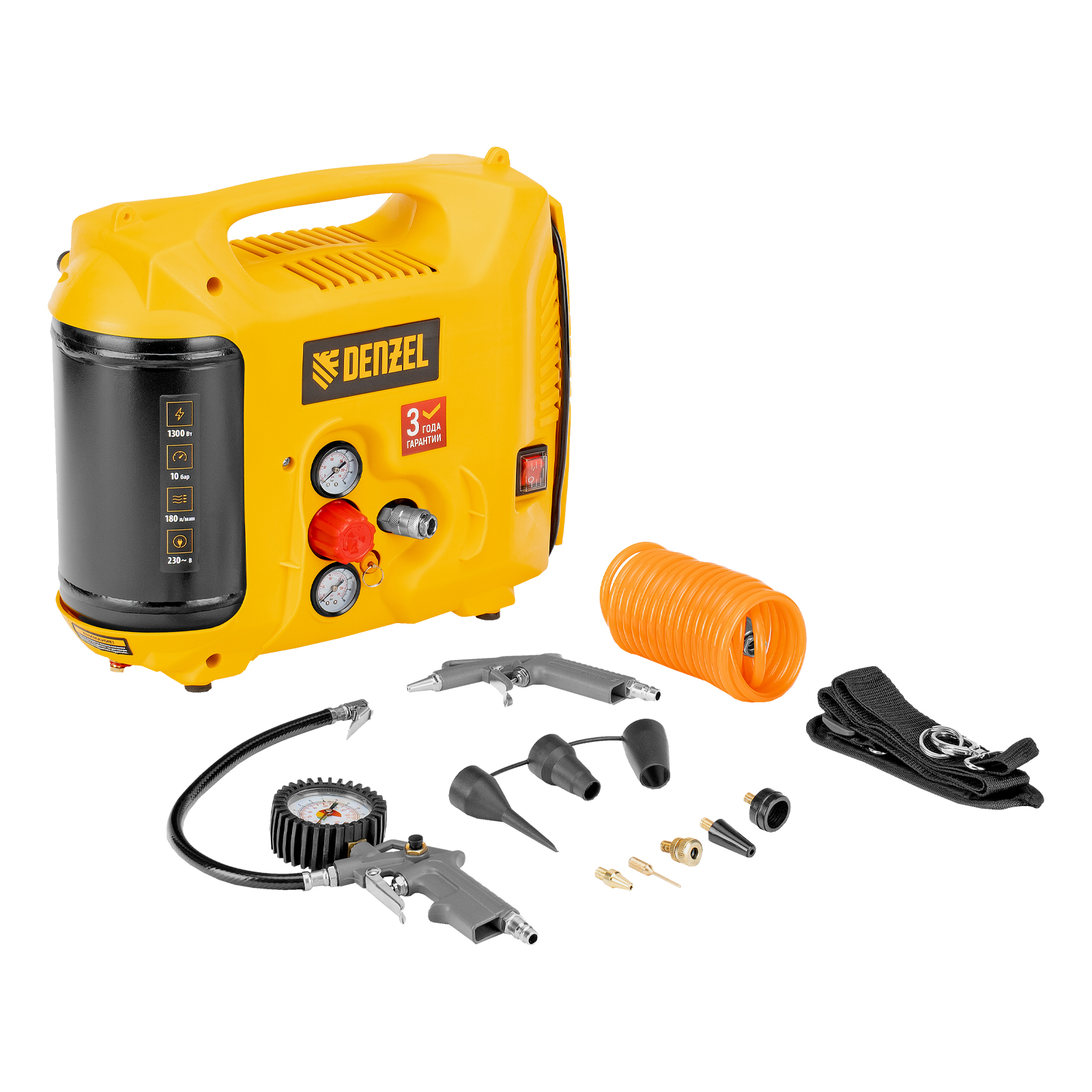 Компрессор воздушный DL1300, 10 бар, 1,3 кВт 180 л/мин 5 л, с набором аксессуаров Denzel в Краснодаре