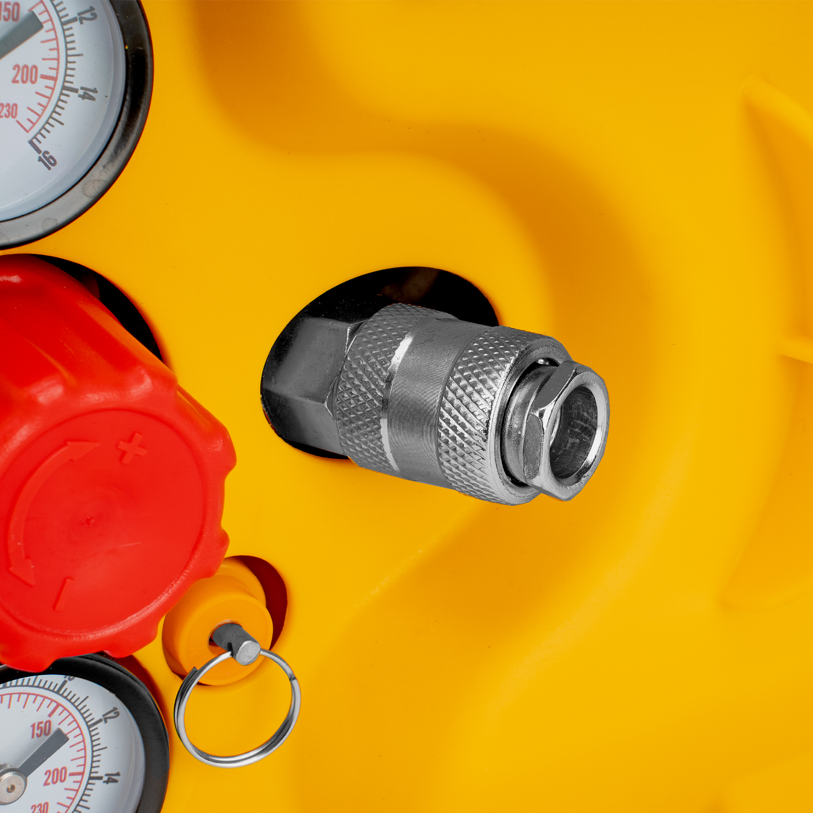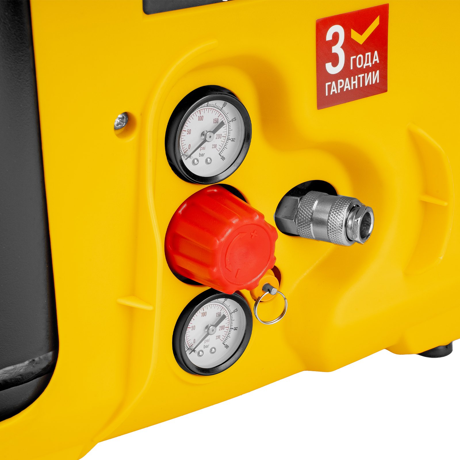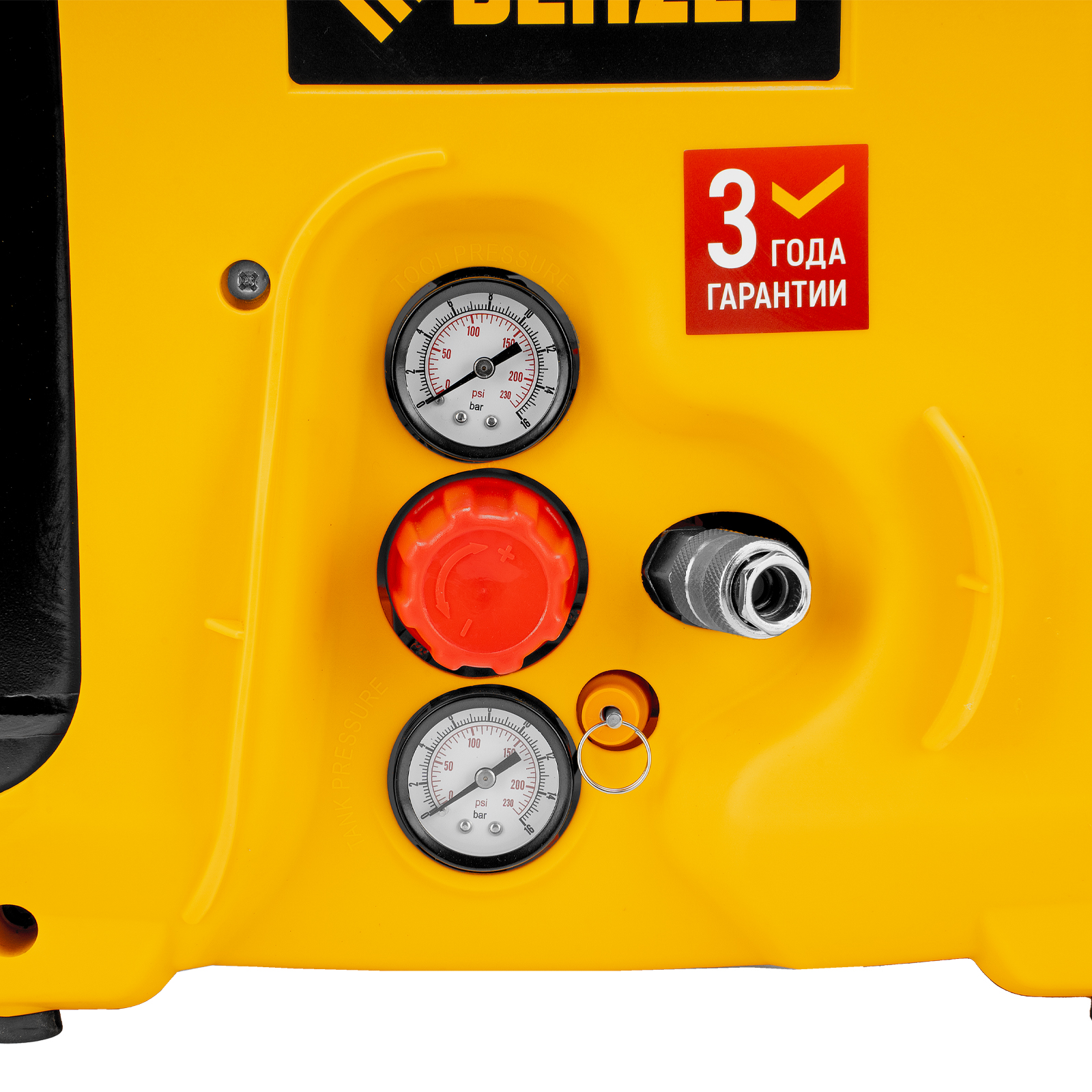 - Контроль давления в ресивере и пневмолинии — конструкцией предусмотрено 2 манометра.