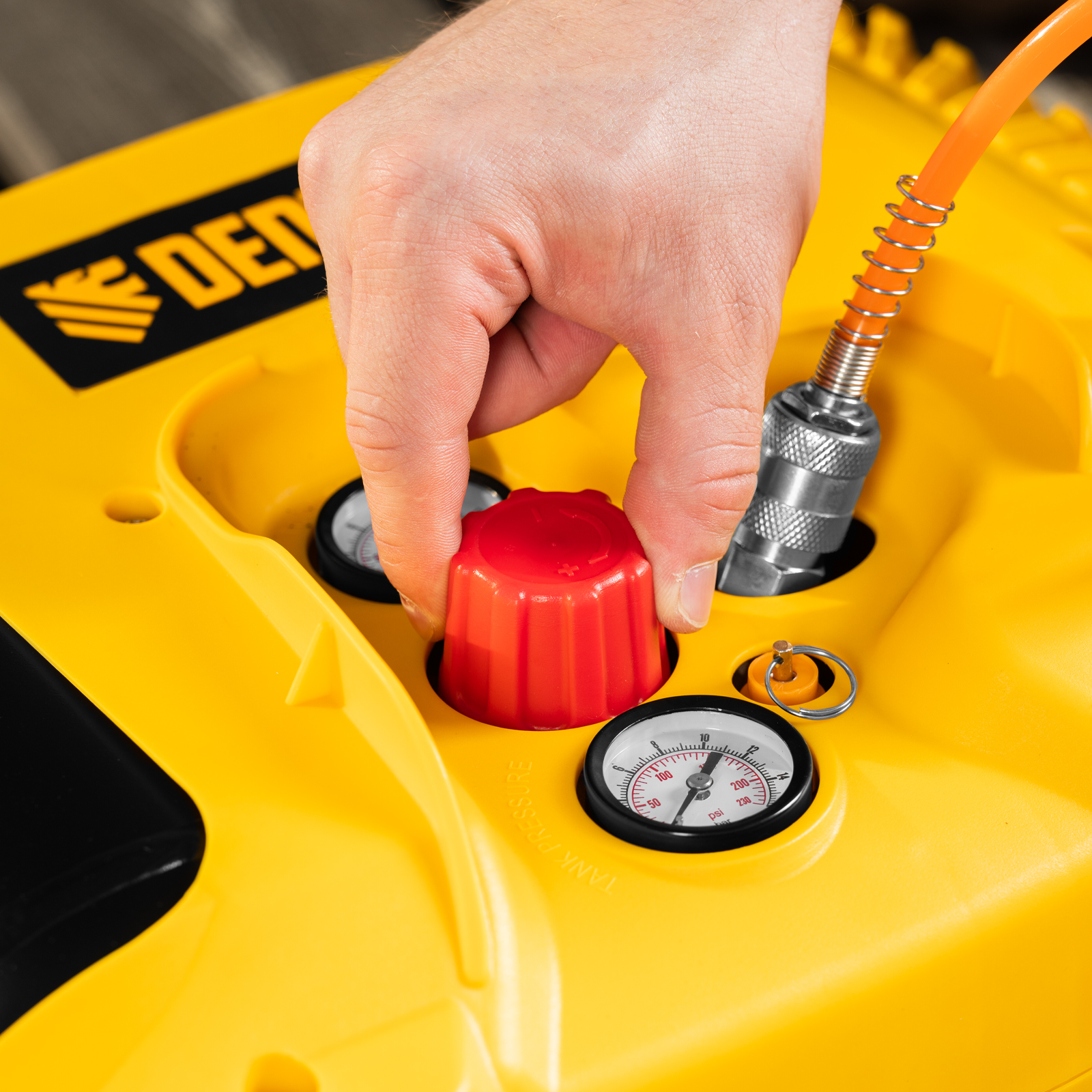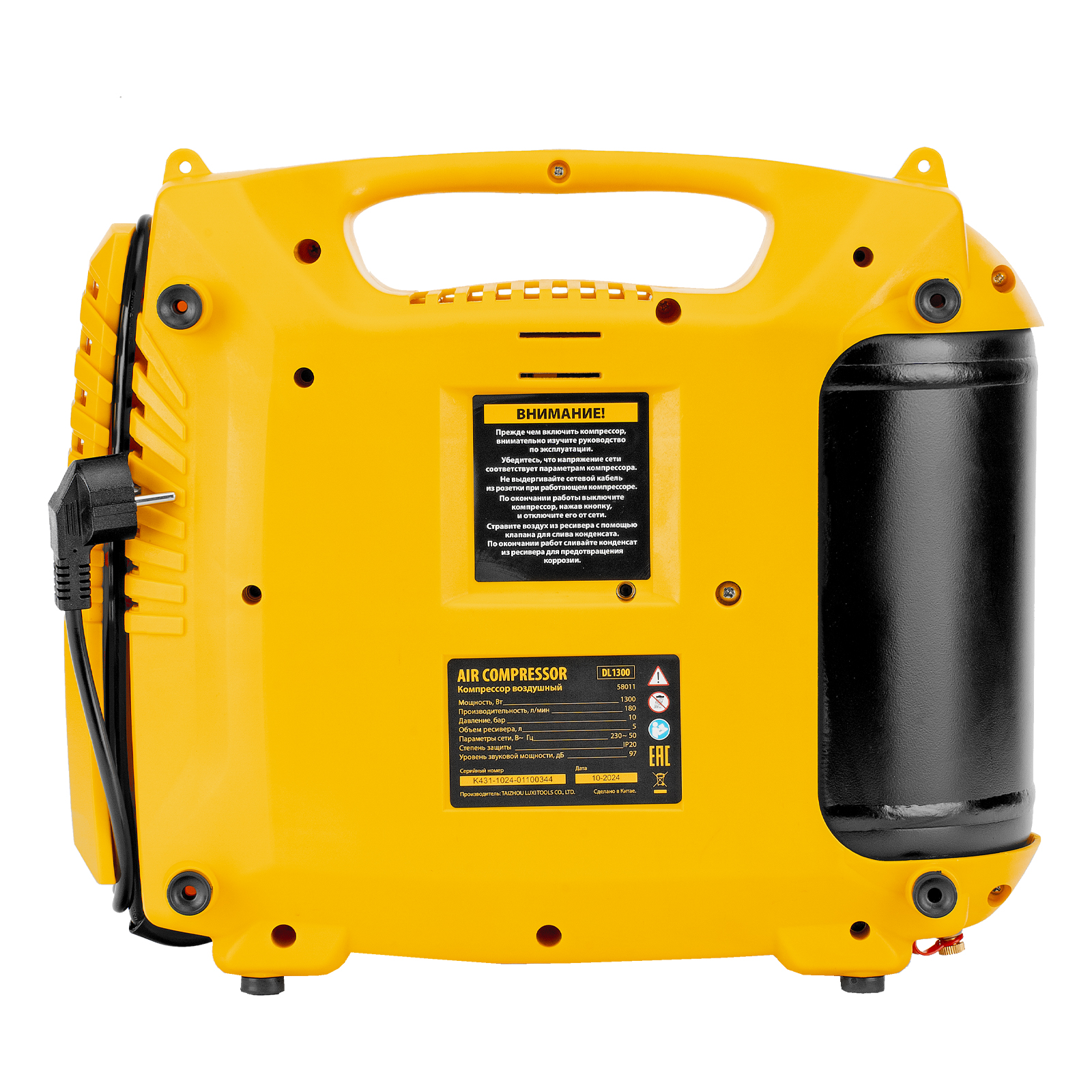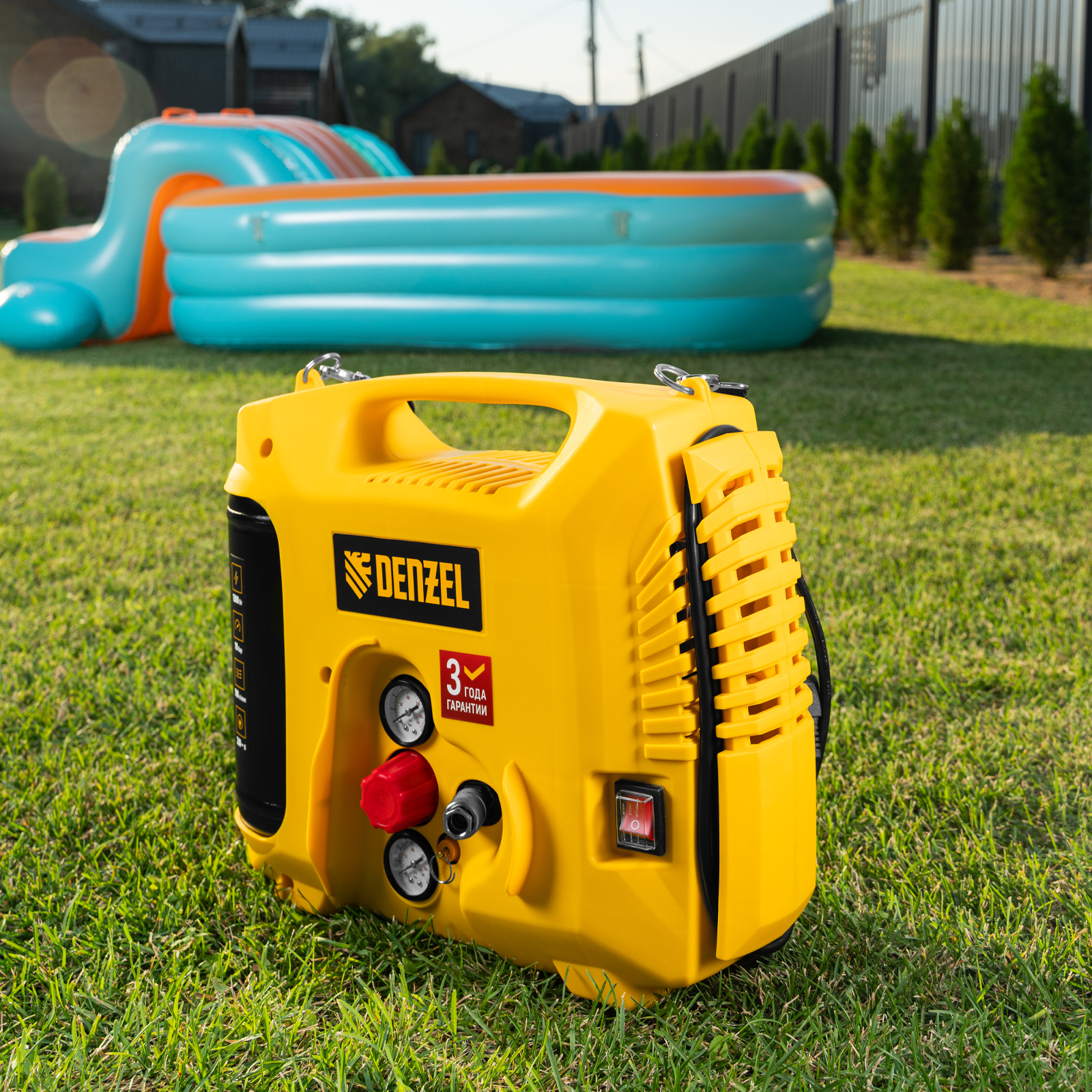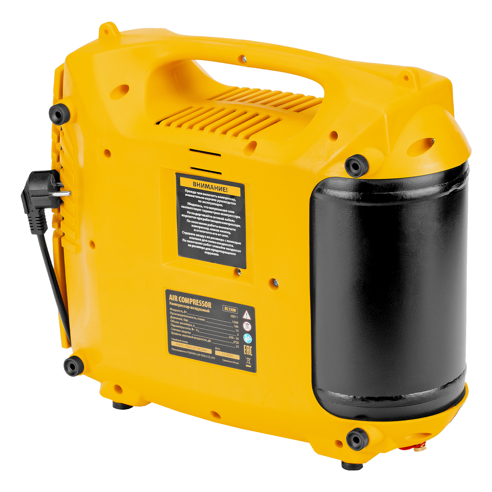 Компрессор воздушный Denzel DL1300 58011 мощностью 1,3 кВт, с максимальным рабочим давлением 10 бар, обеспечивает производительность 180 л/мин и поставляется с набором аксессуаров. Предназначен для обеспечения сжатым атмосферным воздухом нейлеров, степлеров, продувочных пистолетов, окрасочных и мовильных пистолетов и других пневмоинструментов, не требующих большого объема воздуха. Компрессор идеален для накачивания автомобильных шин, лодок, матрасов, мячей и прочих надувных изделий, а также для продувки труб водоснабжения.