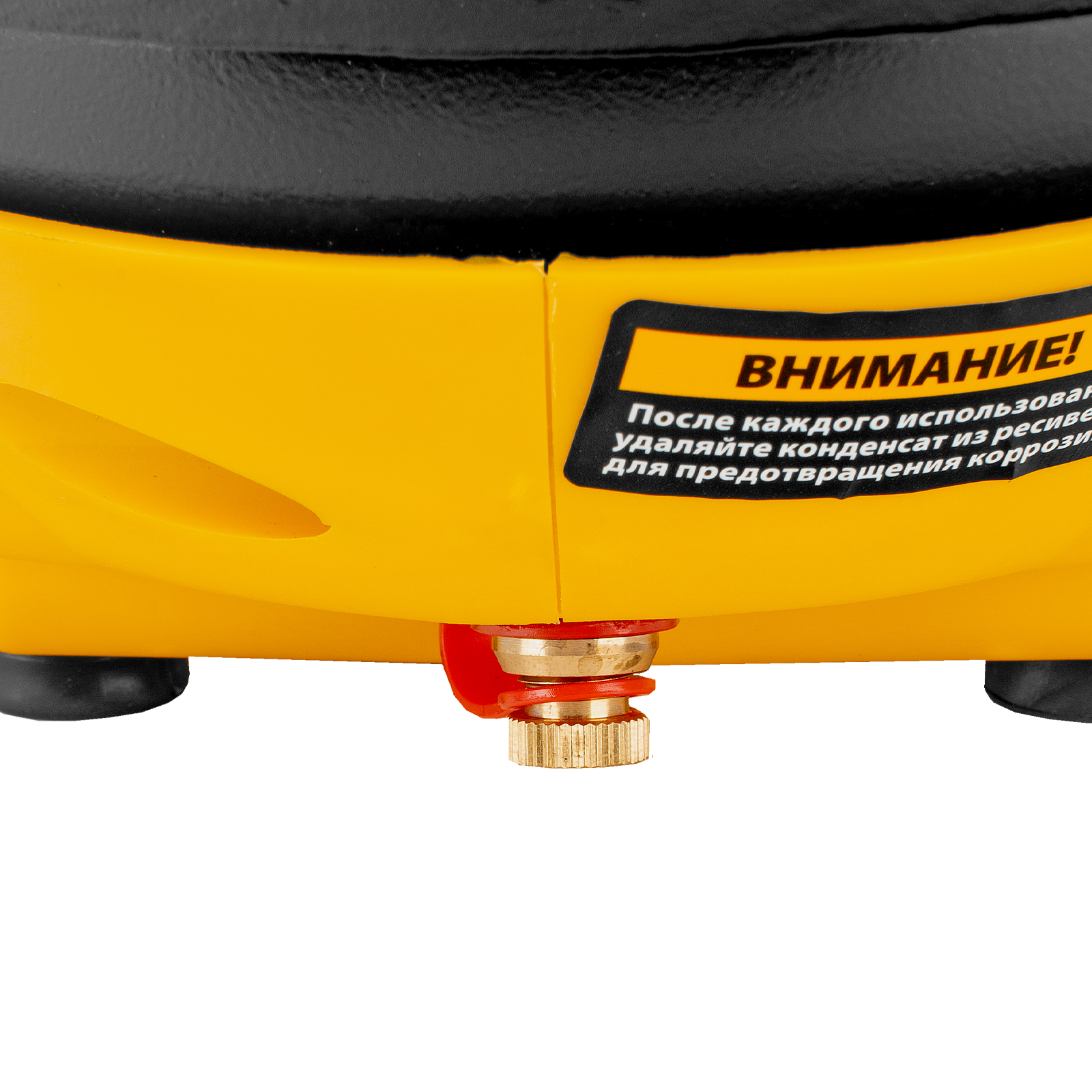- Простое обслуживание — клапан слива конденсата позволяет оперативно удалить лишнюю влагу после окончания работы, чтобы избежать разрушения ресивера.