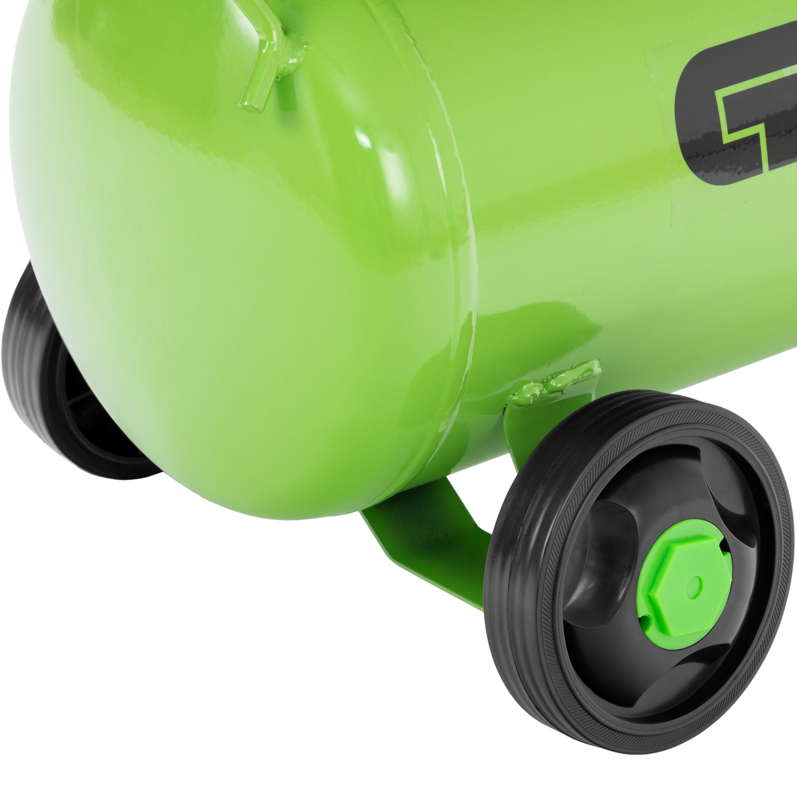 - Легкая транспортировка: удобные колеса помогают перемещать компрессор по рабочей площадке, не поднимая его