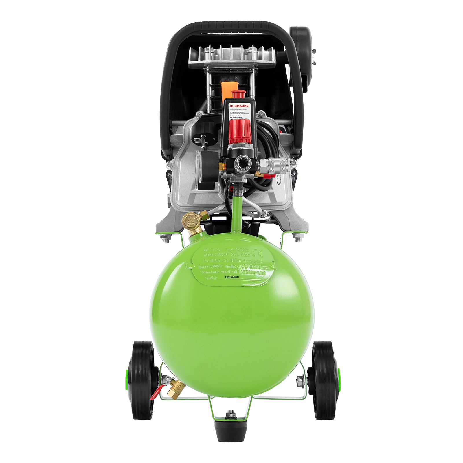 Компактный и бюджетный, компрессор применяется для небольших ремонтных операций, подкачки шин, обслуживания насосов, продувки деталей. Его удобно использовать с дрелями, гайковертами, степлерами, распылителями строительных смесей — масляные пары попадают в пневмоинструмент и смазывают трущиеся детали, защищая их от износа.,Пневматическое оборудование обеспечивается сжатым воздухом со скоростью 135 л/мин. Ресивер объемом 22 литра заполняется менее чем за 2 минуты.