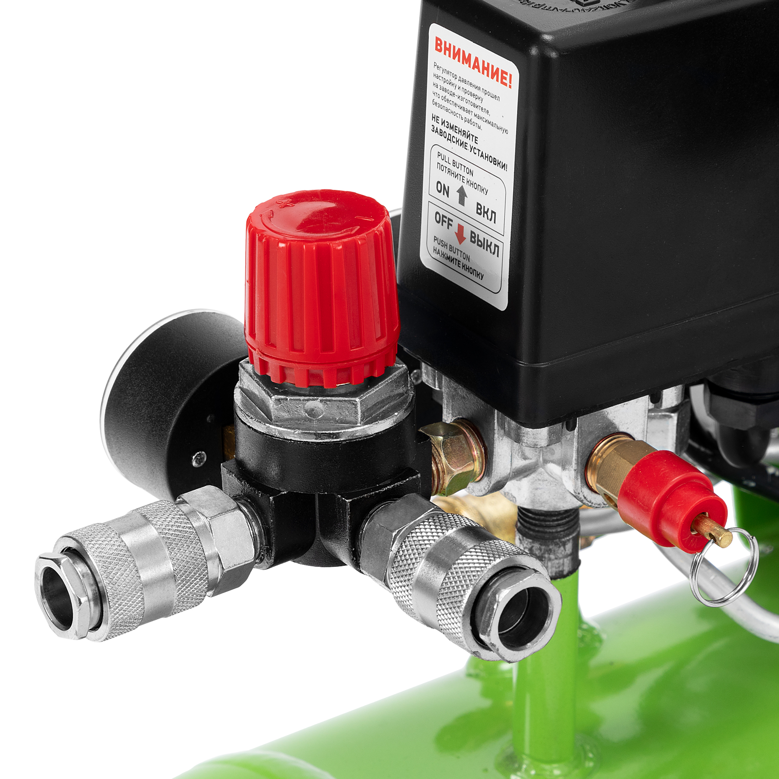 - Продуманные пневмоконнекторы: разъемы европейского типа облегчают подключение пневматического инструмента к компрессору.