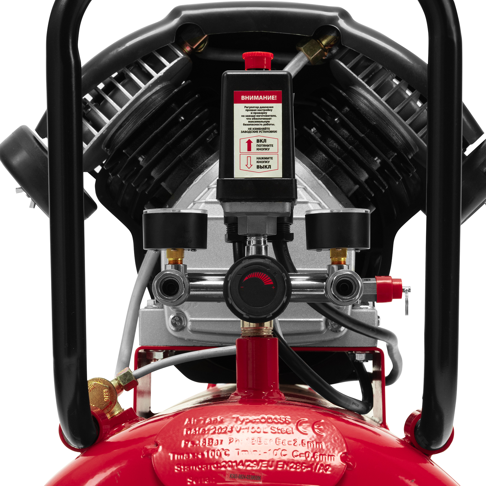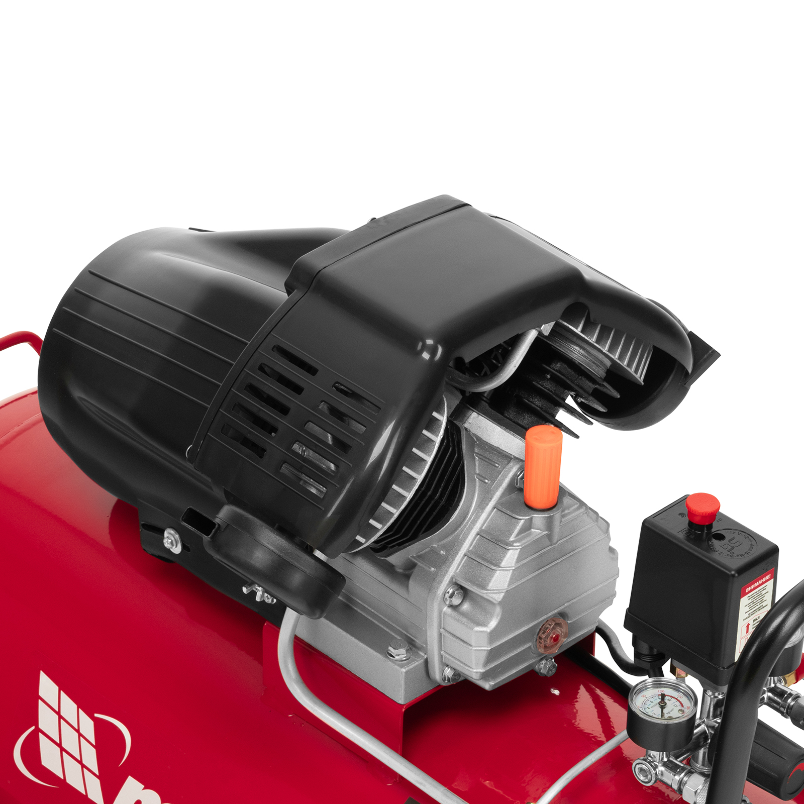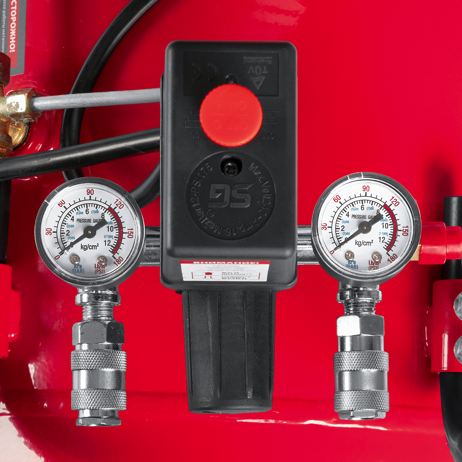 - Автономная работа — прессостат обеспечивает автоматическую остановку двигателя по достижении максимального рабочего давления и запуск при падении давления до минимального уровня.