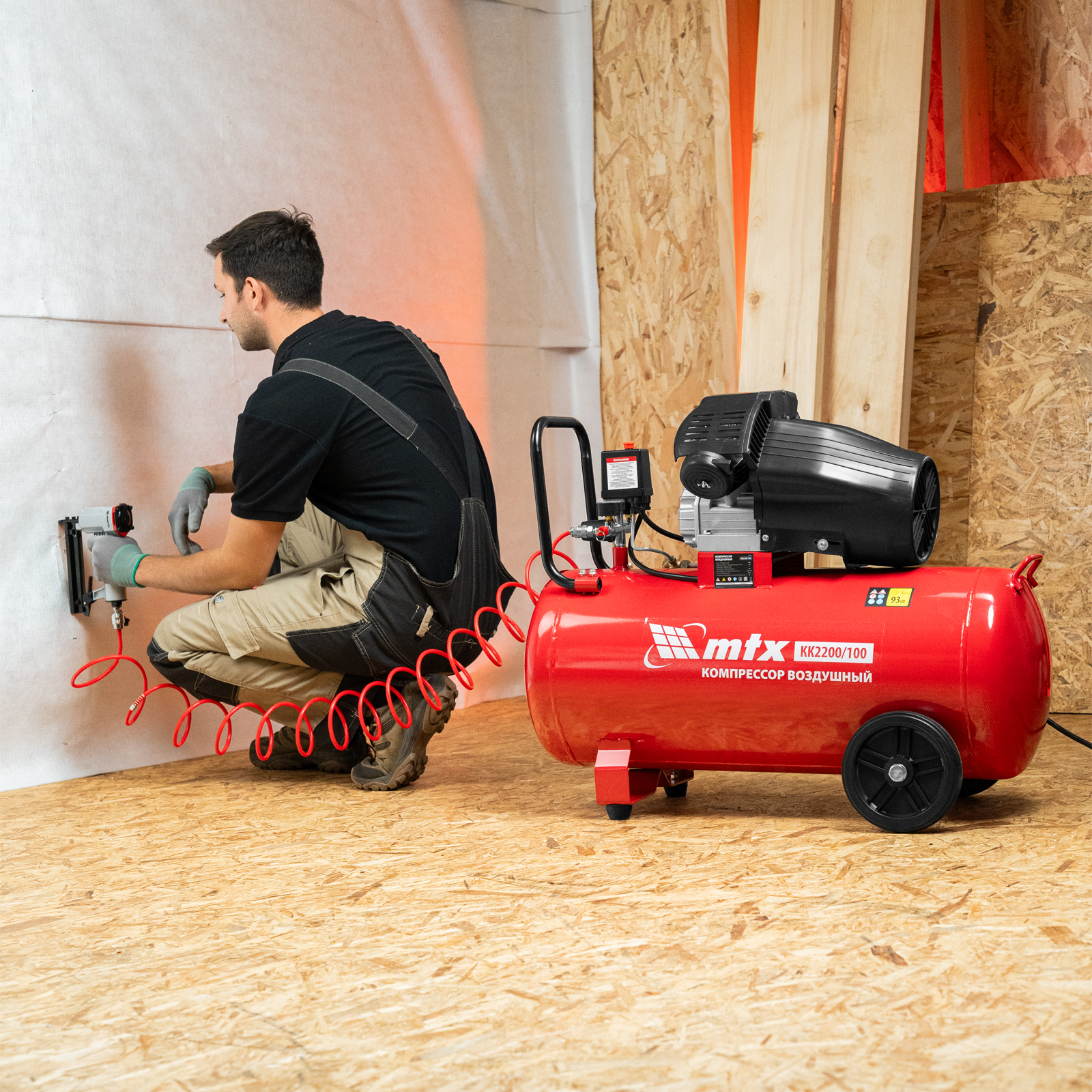 Масляный воздушный компрессор MTX KK-2200/100 58033 мощностью 2,2 кВт, с прямым приводом, оснащен ресивером объемом 100 л, рассчитан на давление до 8 бар и обеспечивает производительность на уровне 350 л/мин. Предназначен для обеспечения работоспособности пневматического инструмента: гайковерта, шлифовальной машины, шуруповерта, краскораспылителя и т.д. Мощный и производительный компрессор будет полезен на строительной площадке, в гараже, на предприятии автосервиса.