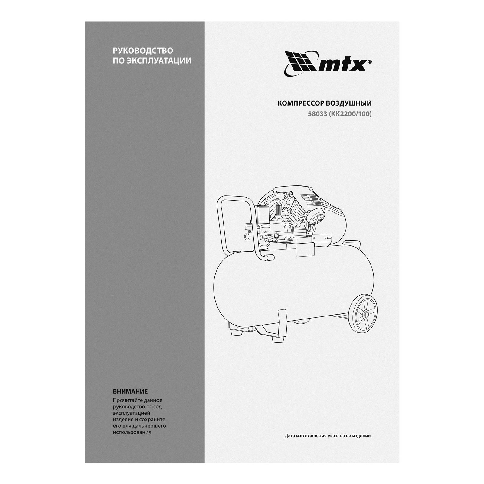 Компрессор воздушный КК-2200/100, 2,2 кВт, 350 л/мин, 100 л, прямой привод, масляный MTX в Краснодаре