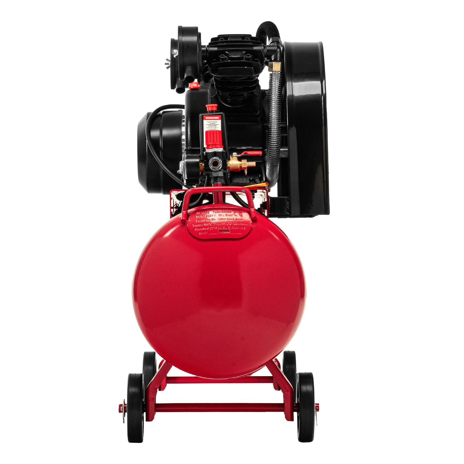 - Мобильность — колеса и рукоятки облегчают перемещение компрессора по рабочей площадке.