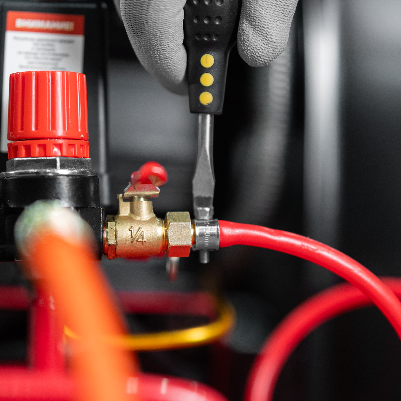 - Простая подготовка к работе — подключение пневмоинструмента к быстросъемному коннектору занимает несколько секунд.