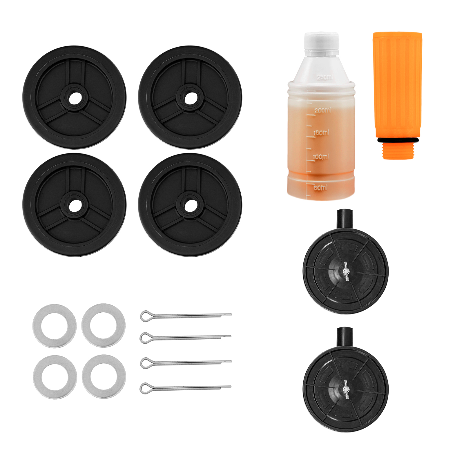 Компрессор - 1 штКолесо - 4 штКомплект крепежа - 1 штСапун - 1 штМасло компрессорное минеральное марка DAA100 - 500 млРуководство по эксплуатации - 1 штГарантийный талон - 1 шт |
