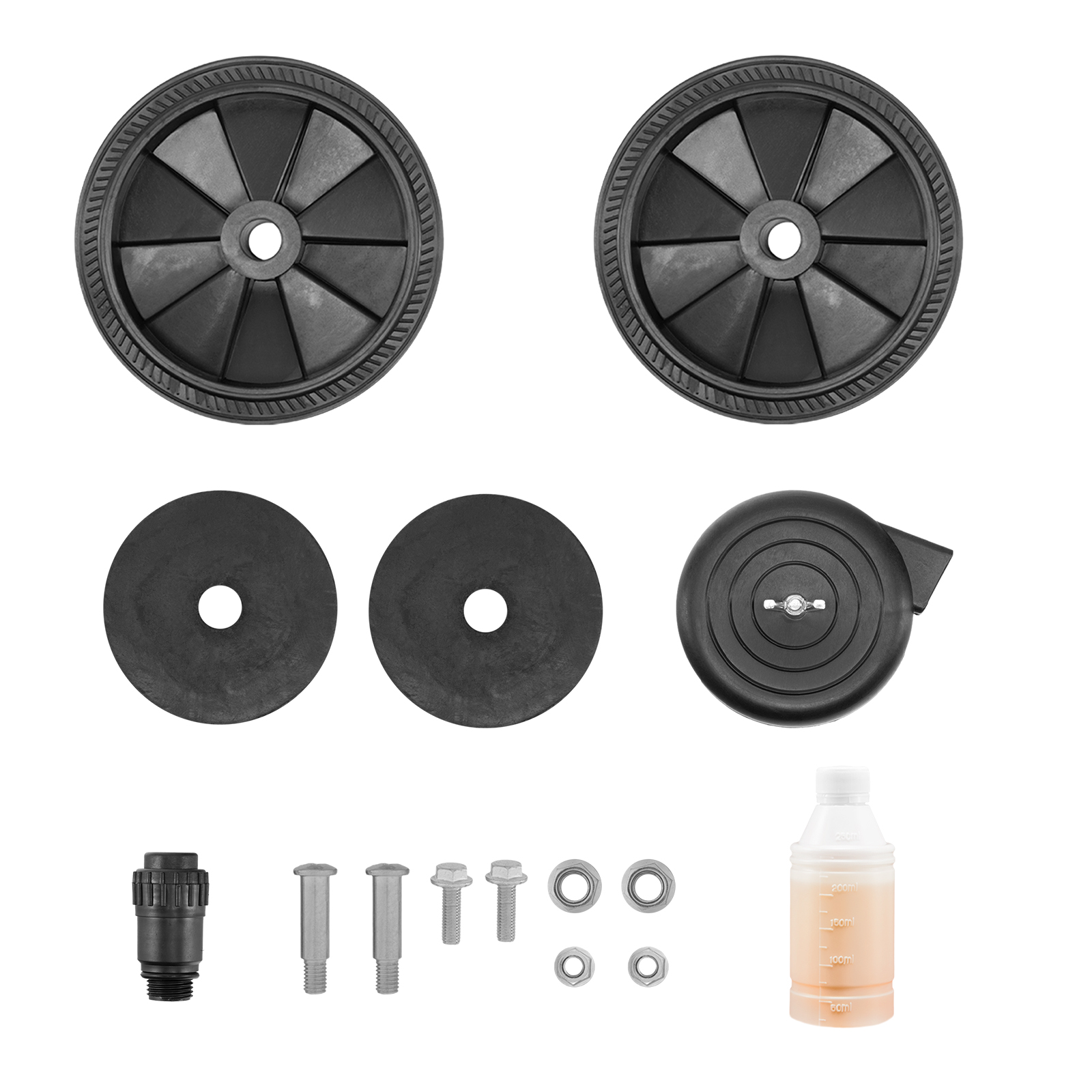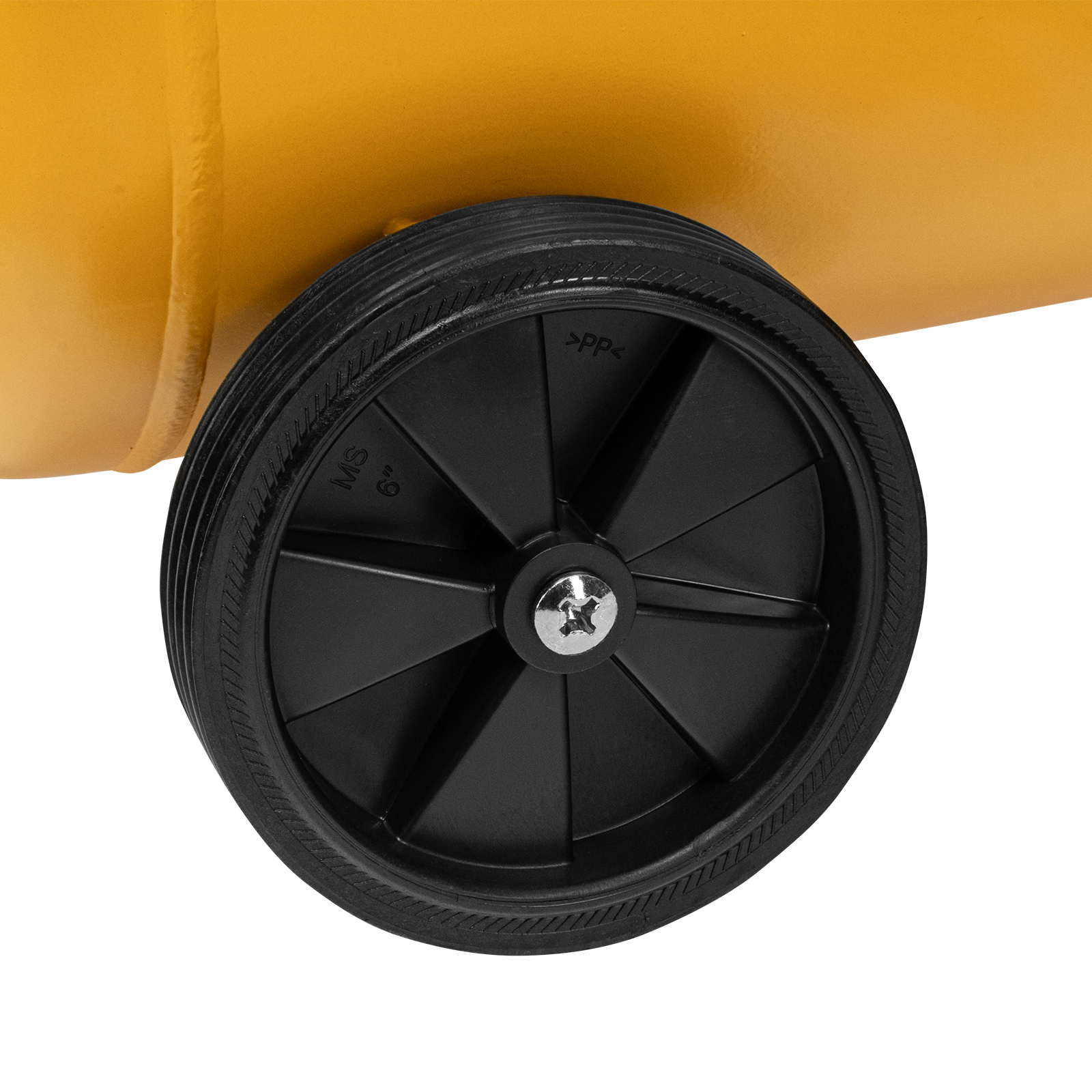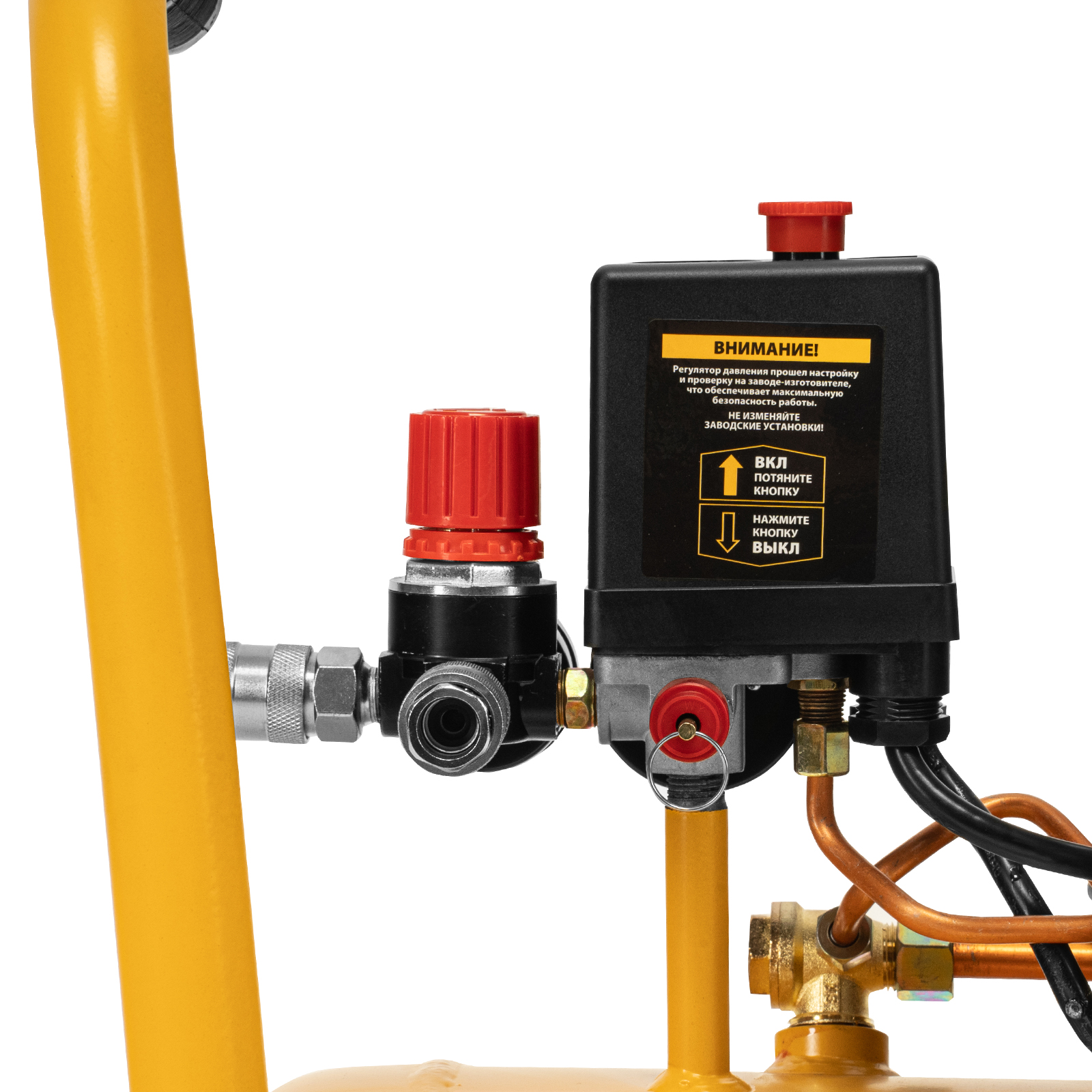 - Мобильность — ручка и колеса облегчают перемещение компрессора по рабочей площадке.