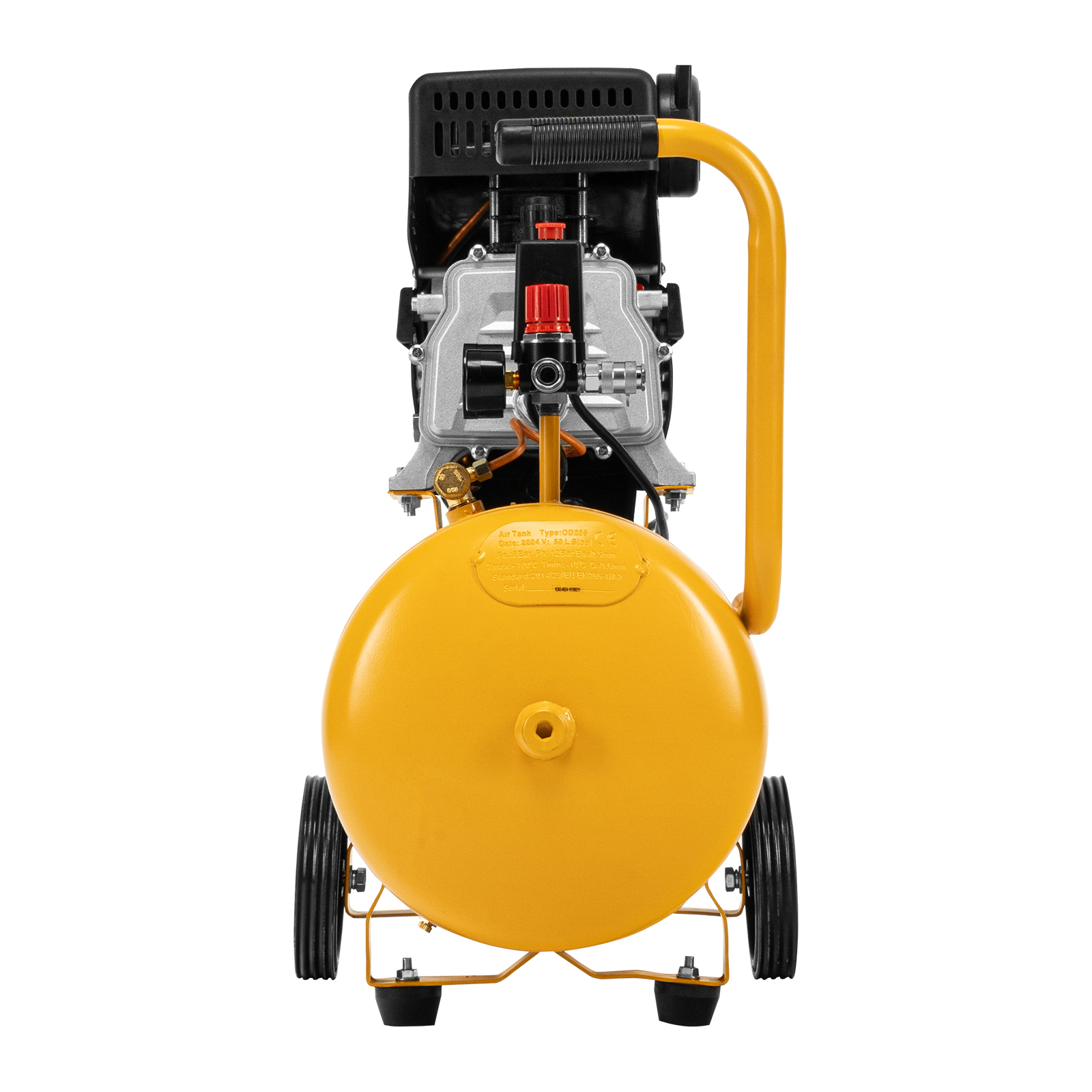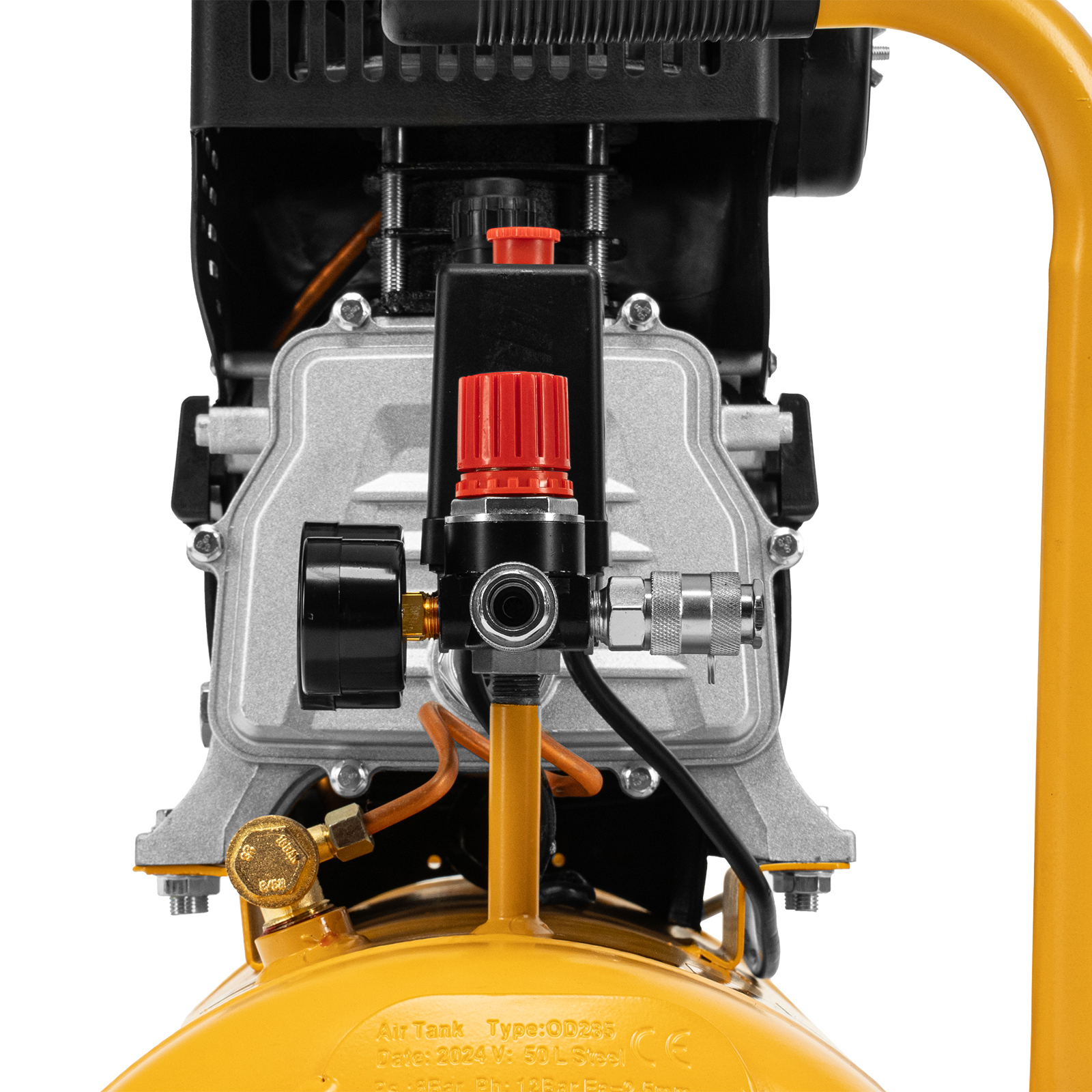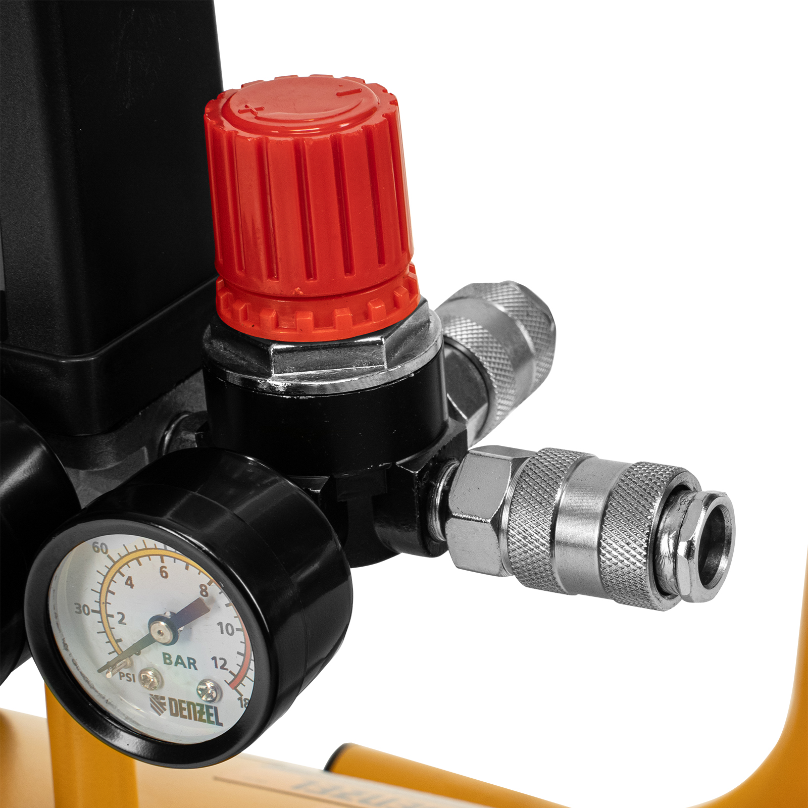 Воздушный компрессор с прямым приводом Denzel DC1500/50 58161 мощностью 1,5 кВт и производительностью 220 л/мин, с объемом ресивера 50 л, используется для подачи сжатого воздуха к пневмоинструменту, например, пневмогайковерту, пневмодрели, пневмостеплеру, пневмозубилу. Благодаря использованию смазочного масла, которое снижает износ деталей, компрессор выдерживает длительную работу и подходит для профессионального применения в автомастерской, гараже или на строительной площадке.