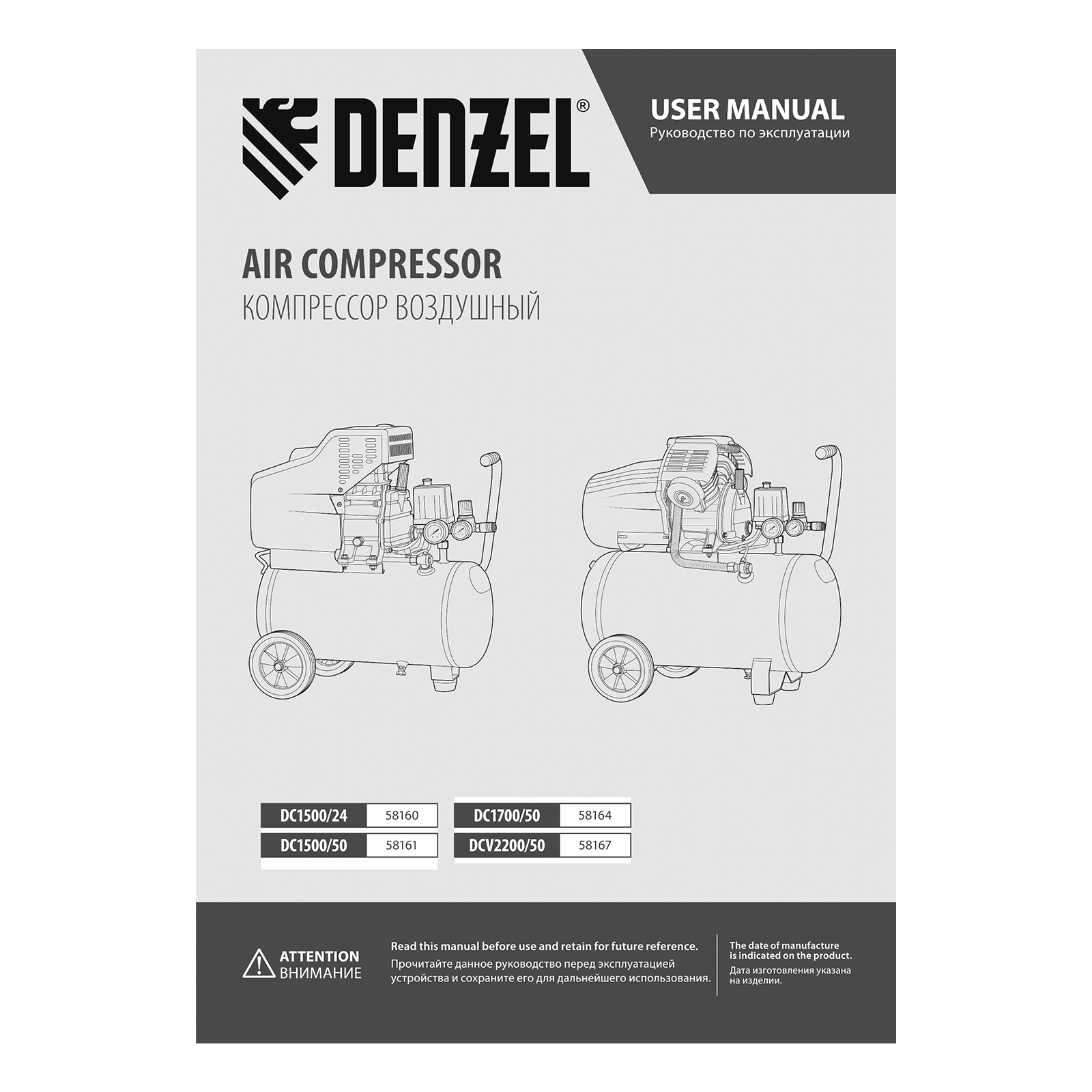 Компрессор воздушный, прямой привод DC1500/50, 1.5 кВт, 50 литров, 220 л/мин Denzel в Краснодаре