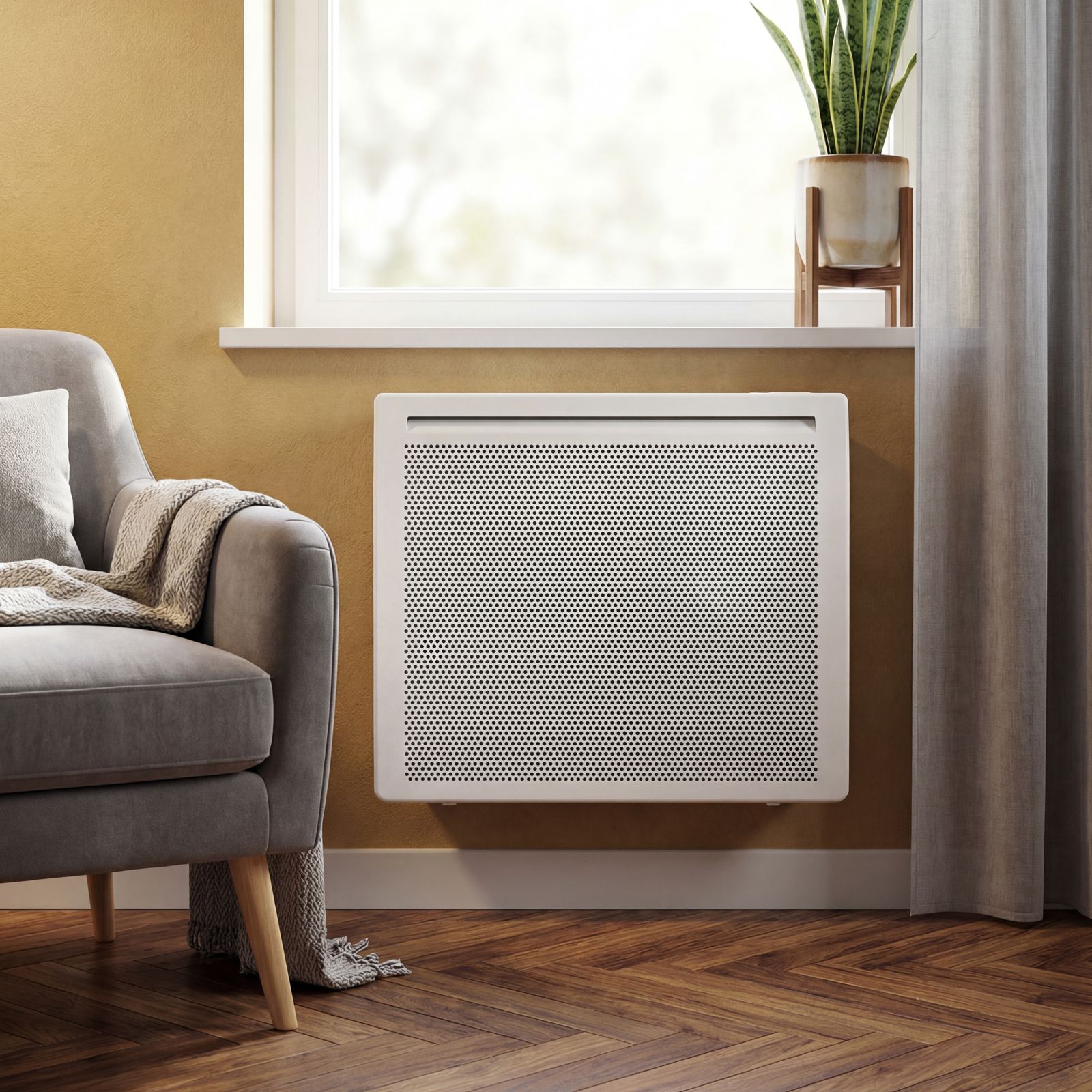 - Высокая энергоэффективность — гибридный нагревательный элемент излучает инфракрасное тепло и одновременно обеспечивает конвекцию воздуха, что позволяет прогревать помещение заметно быстрее при тех же затратах энергии.