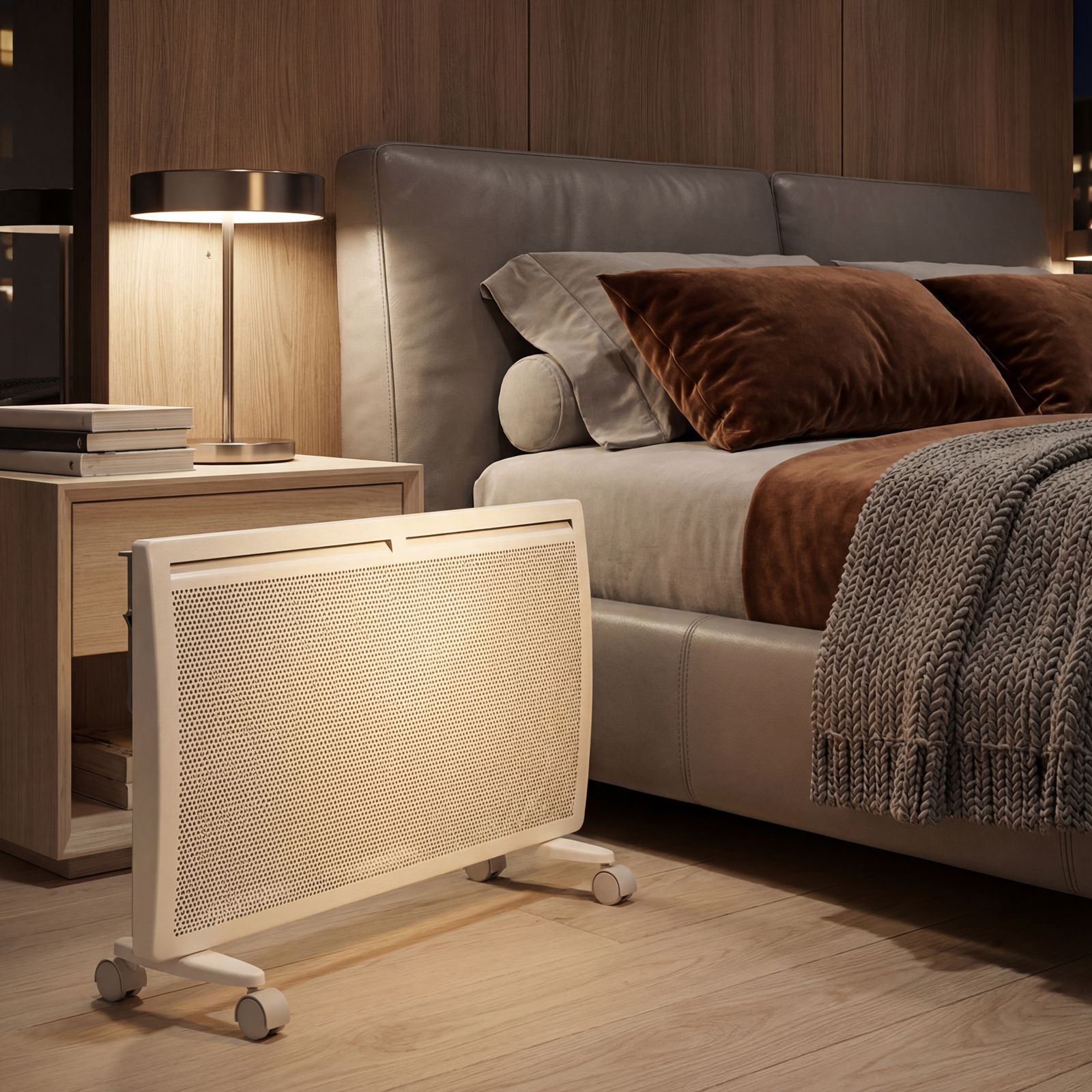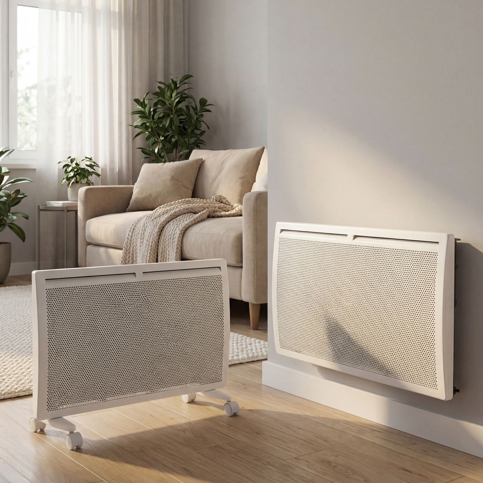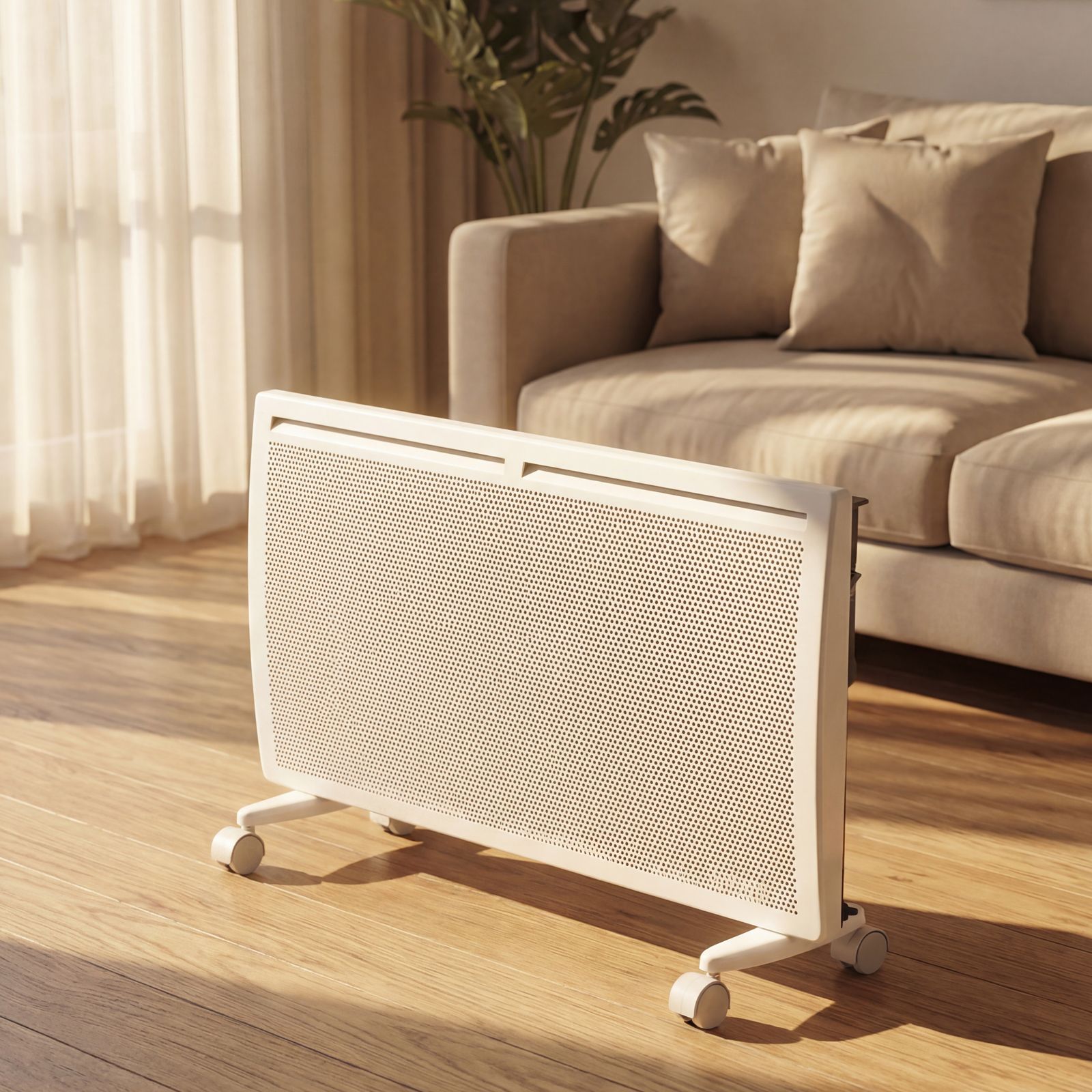 - Высокая энергоэффективность — гибридный нагревательный элемент излучает инфракрасное тепло и одновременно обеспечивает конвекцию воздуха, что позволяет прогревать помещение заметно быстрее при тех же затратах энергии.