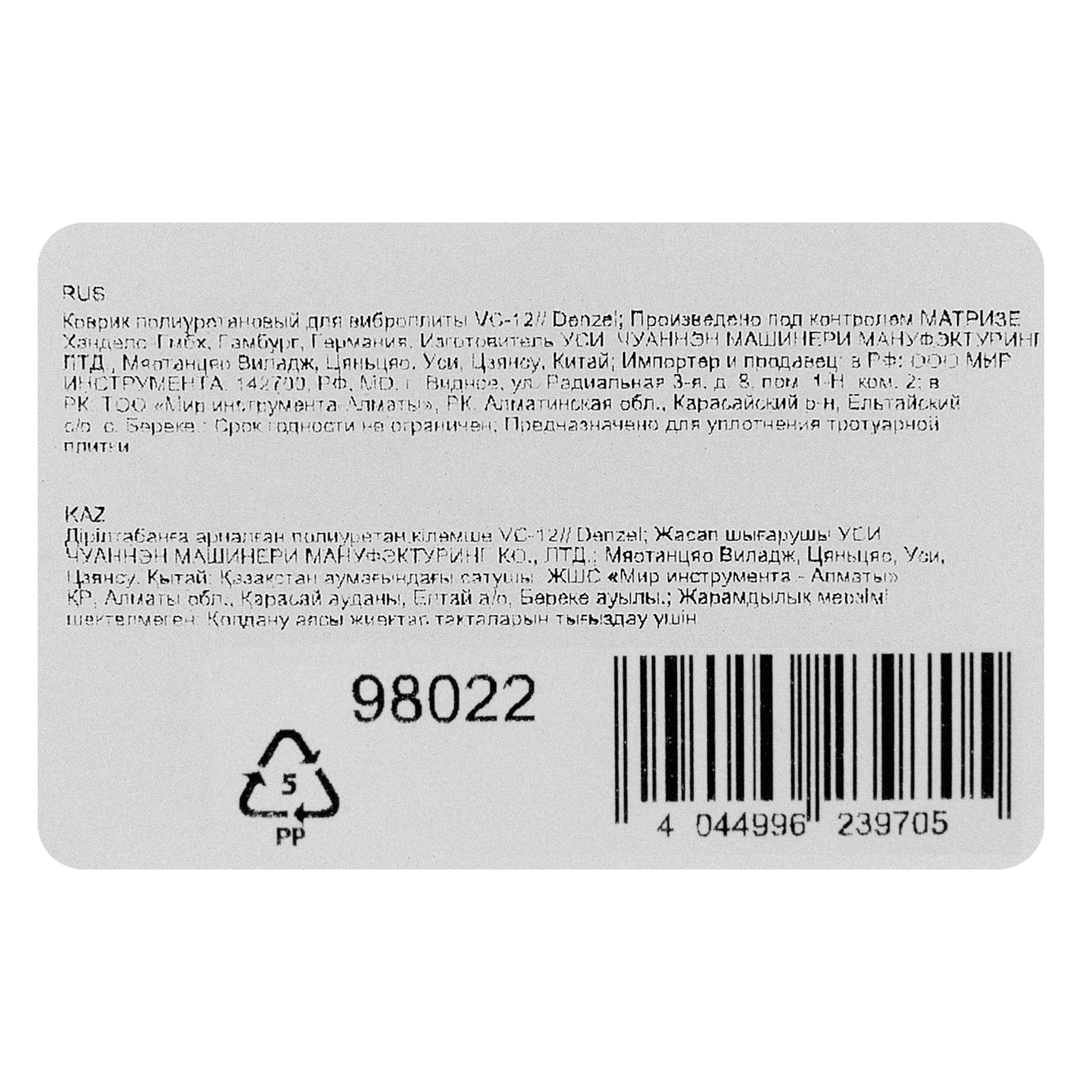 Полиуретановый коврик Denzel 98022 предназначен для установки на виброплиту Denzel VC-30W. Используется во время укладки тротуарной плитки. Обеспечивает бережное уплотнение на любых поверхностях.