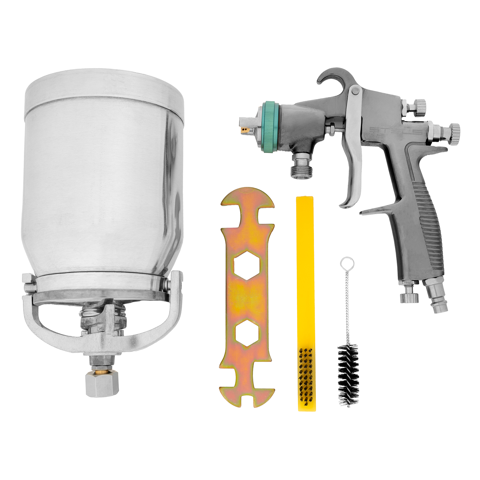 Краскораспылитель с бачком - 1 штШтуцер - 1 штСменное сопло диаметром 1,5 мм - 1 штРуководство по эксплуатации и гарантийный талон - 1 шт |