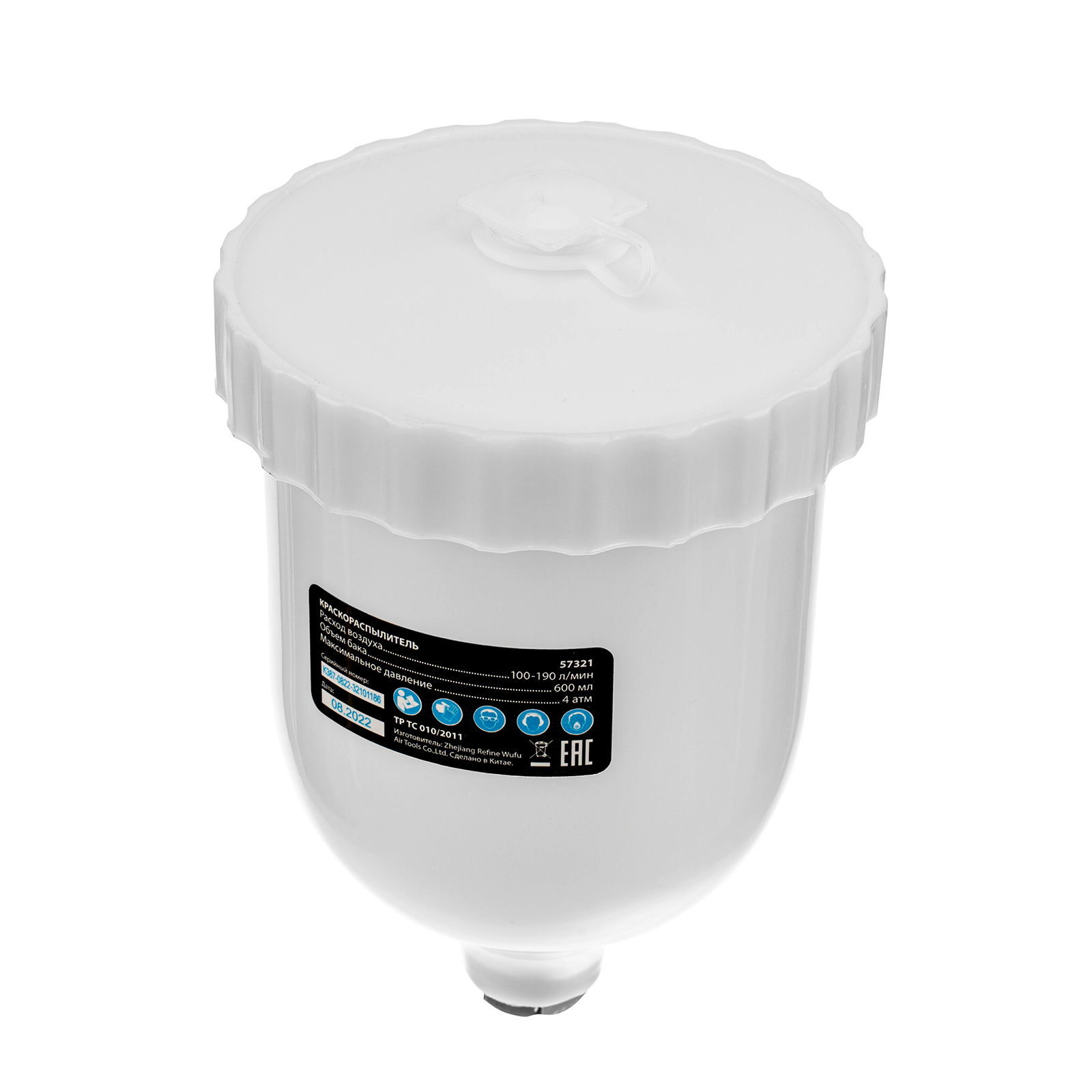 - Верхнее расположение бака — краскопульт удобно заправлять, лакокрасочный материал расходуется полностью.