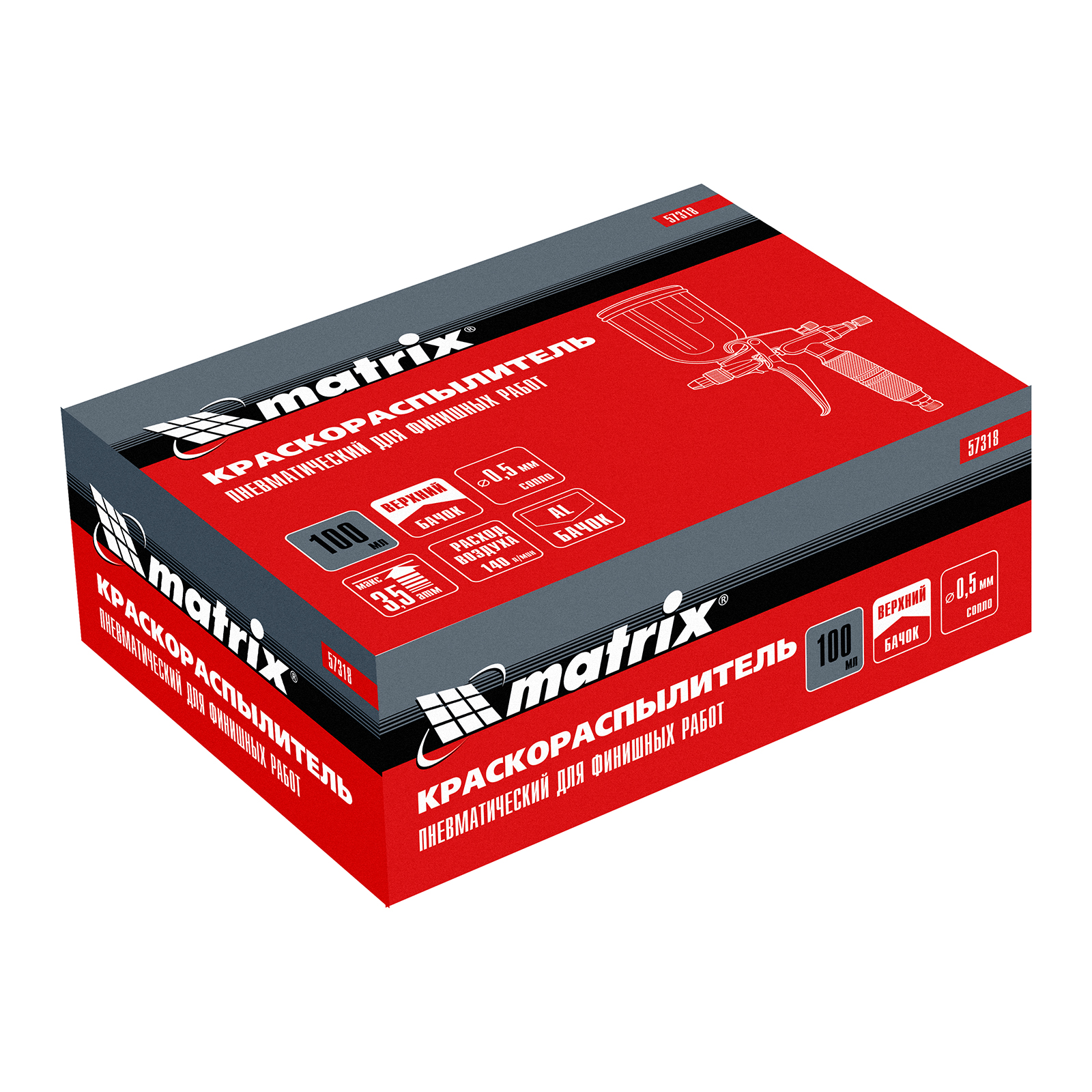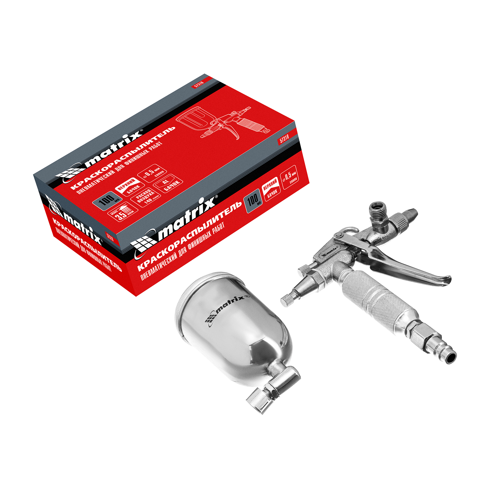 Краскораспылитель пневматический для финишных работ с верхним бачком V 0,1 л, сопло D 0.5 мм Matrix в Краснодаре