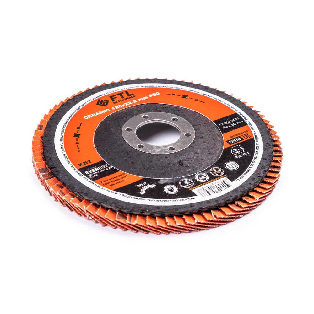 Круг лепестковый с керамическим абразивом для шлифования по нержавеющей стали FTL Everest 27 125 х 22,2 мм P60
