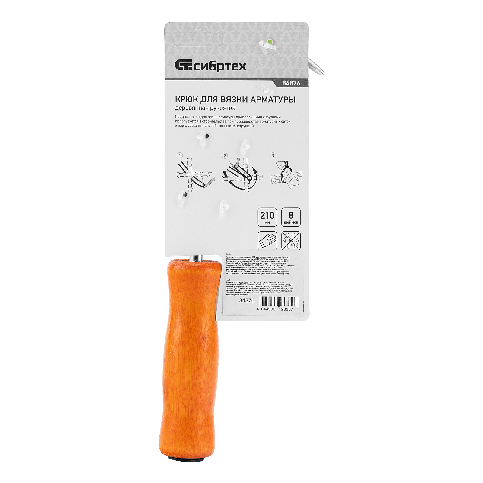 Крюк для вязки арматуры, 210 мм, деревянная рукоятка Сибртех в Краснодаре