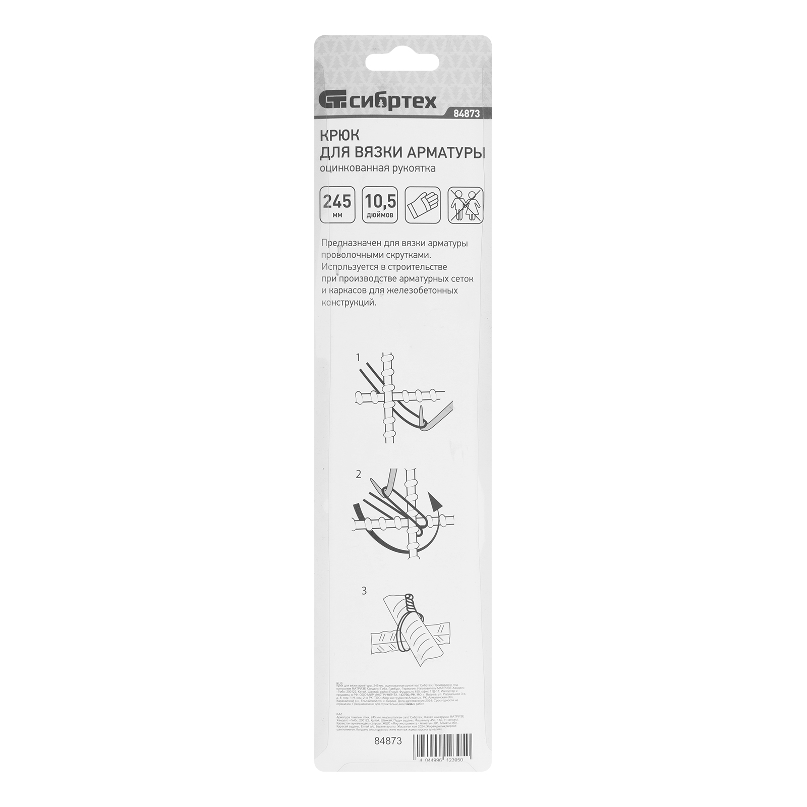 Крюк для вязки арматуры, 245 мм, оцинкованная рукоятка Сибртех в Краснодаре