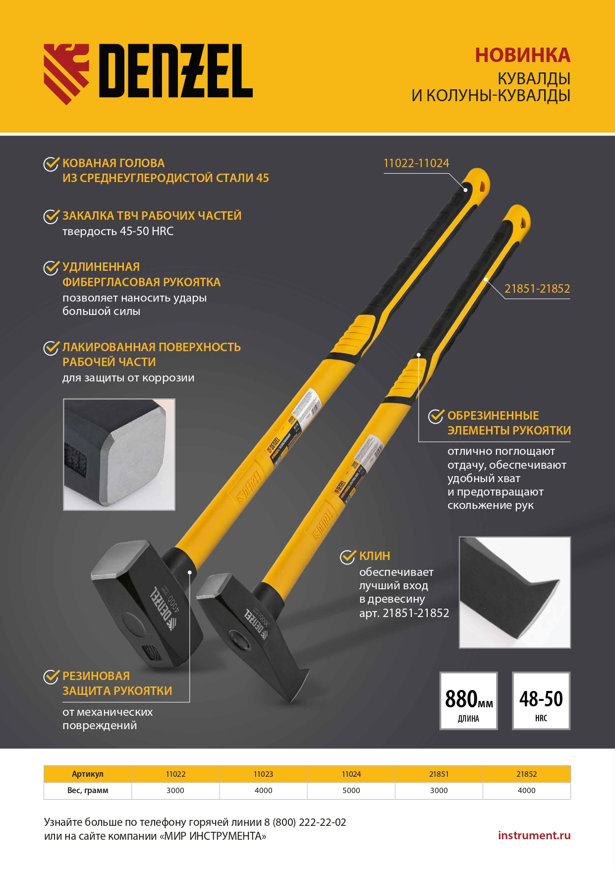 Кованая кувалда Denzel 11023 с бойком весом 4000 г и фибергласовой обрезиненной рукояткой длиной 880 мм, с TPR покрытием, предназначена для проведения демонтажных работ: разрушения кирпичной кладки, камня и бетона, забивания клиньев, кольев, скоб и других тяжелых ударных работ. Удлиненная рукоятка позволяет наносить удары большой силы, а кованый боек отличается прочностью и не подвержен деформациям.