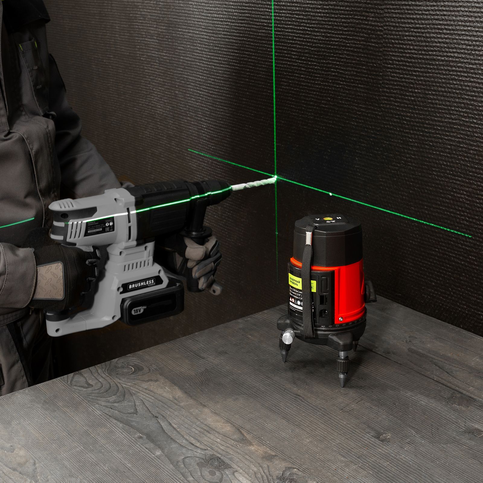 - Широкая комплектация — инструмент поставляется в удобном кейсе, с очками для распознавания лучей на большом расстоянии и при ярком освещении.