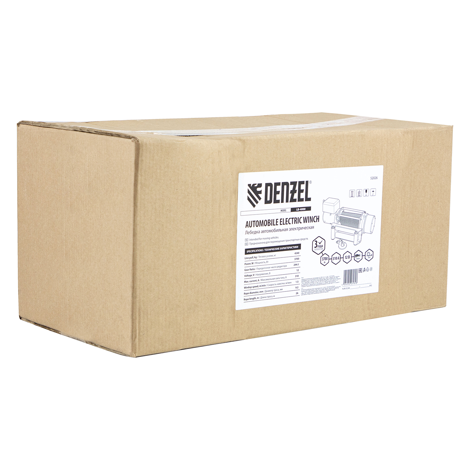 Лебедка автомобильная электрическая LB-4000, 4.5 т, 3.7 кВт, 12 В Denzel в Краснодаре
