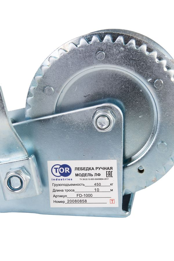 Лебедка ручная барабанная с тросом 400кг 10м оцинкованная TOR FD в Краснодаре