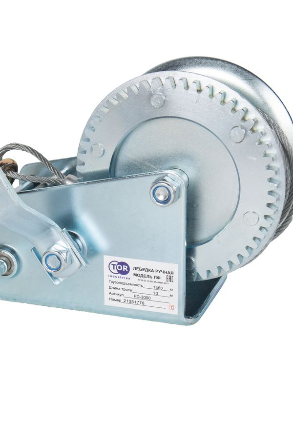 Лебедка ручная барабанная с тросом 1300кг 10м оцинкованная TOR FD в Краснодаре