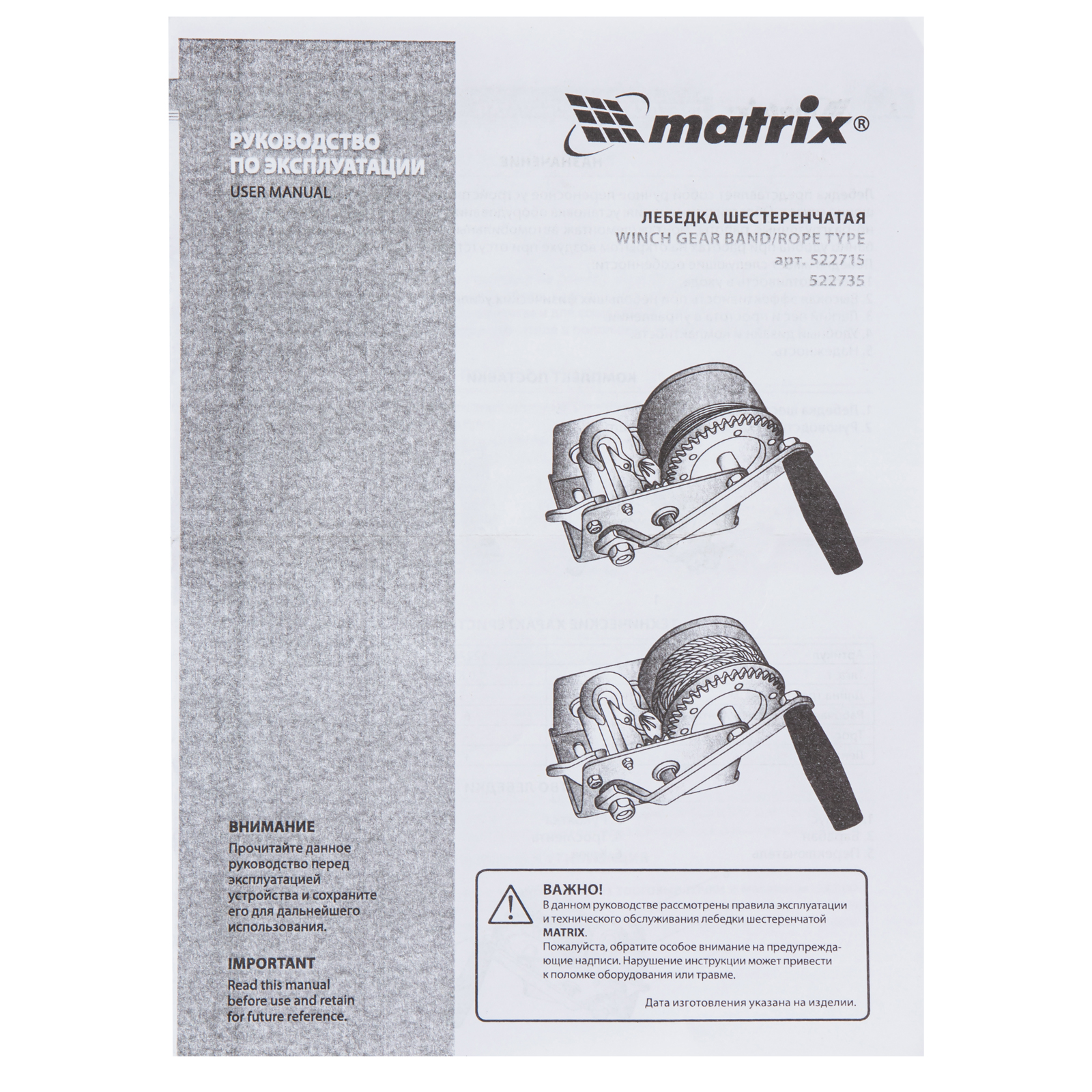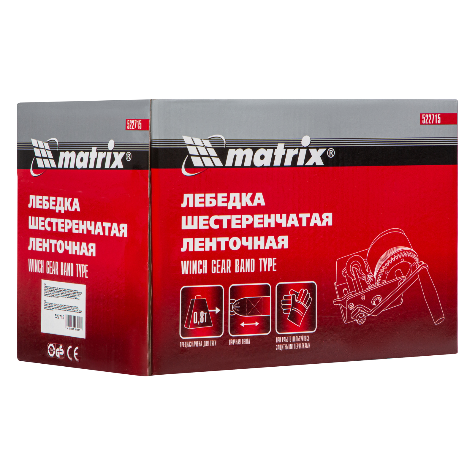 Лебедка шестеренчатая, тяга 0.8 т, ленточная Matrix в Краснодаре