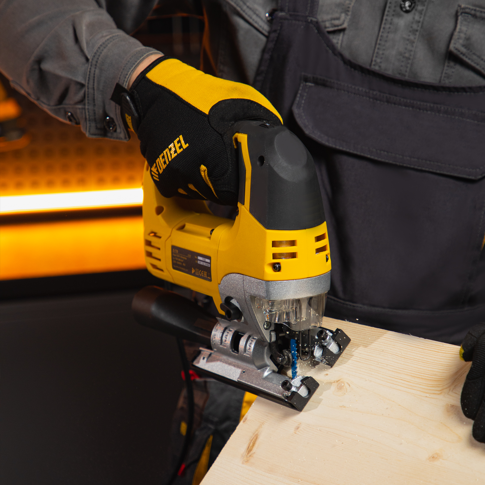 - Одинаковая эффективность при прямой и фигурной резке — усовершенствованный механизм главного движения исключает отклонение пильного полотна в сторону.