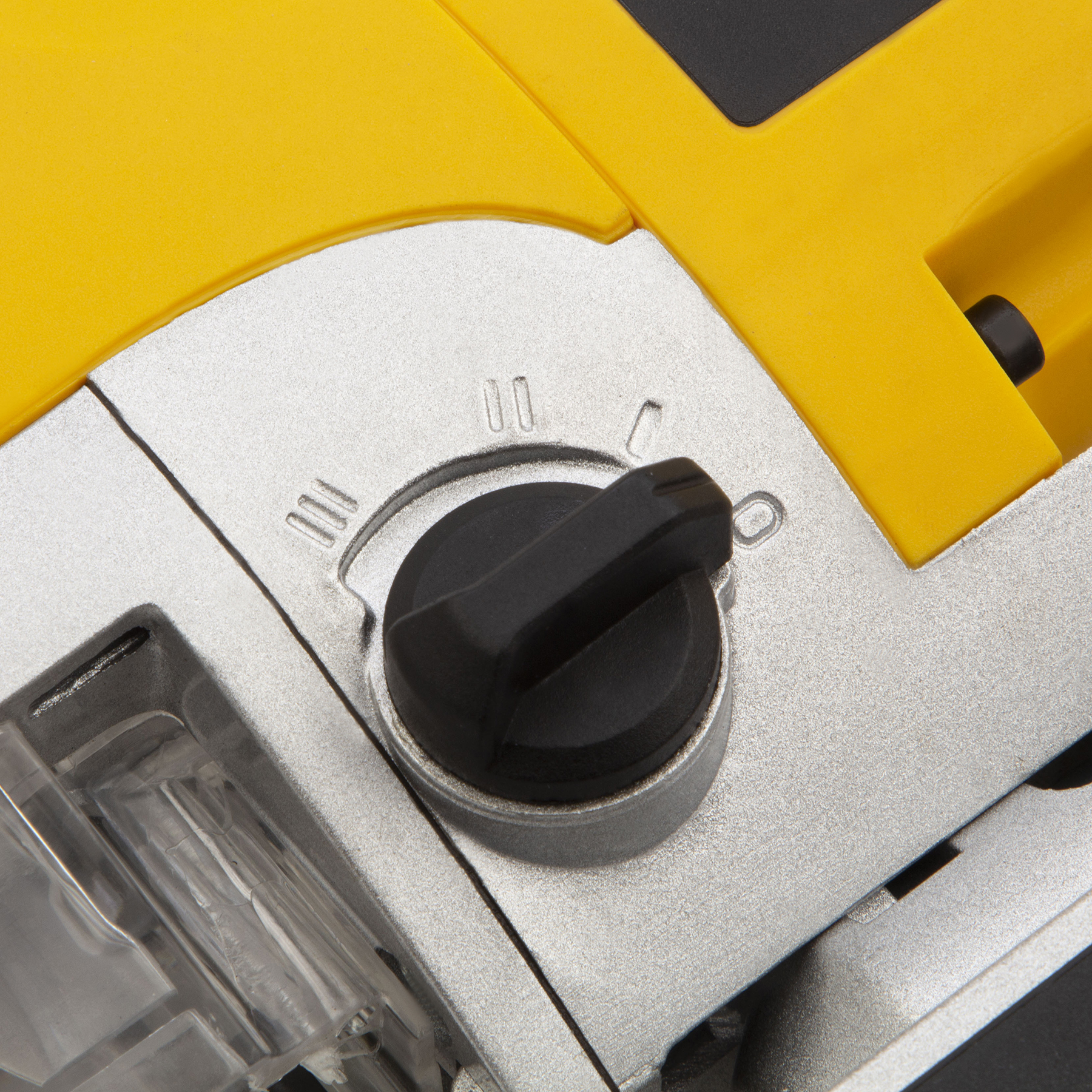 - Электронная регулировка частоты ходов — можно выбрать оптимальную скорость реза в зависимости от обрабатываемого материала.