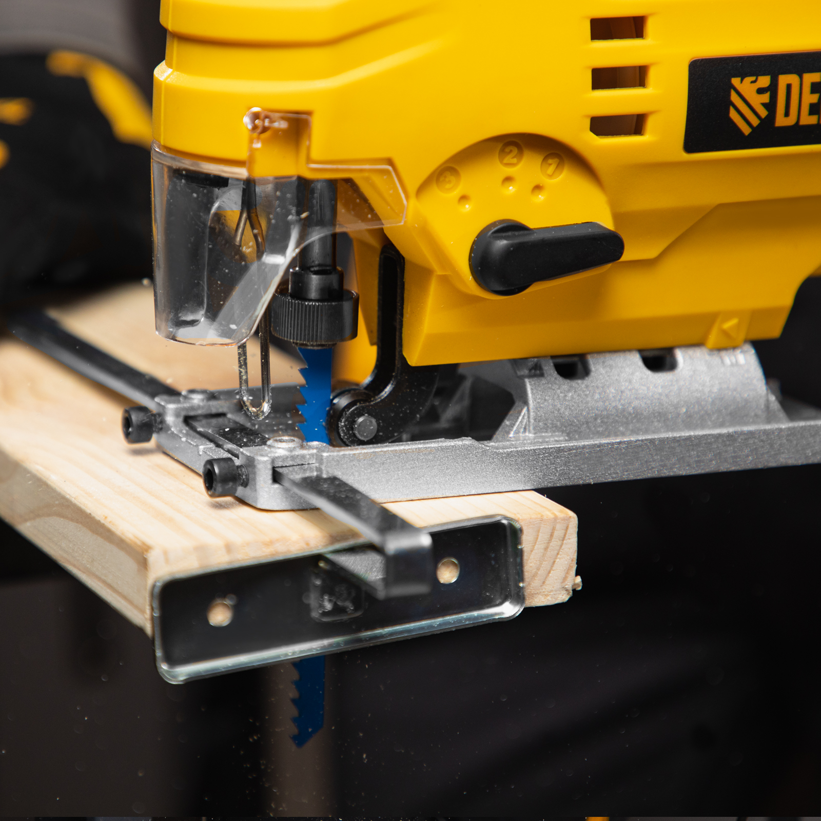 - Одинаковая эффективность при прямой и фигурной резке — усовершенствованный механизм главного движения исключает отклонение пильного полотна в сторону.