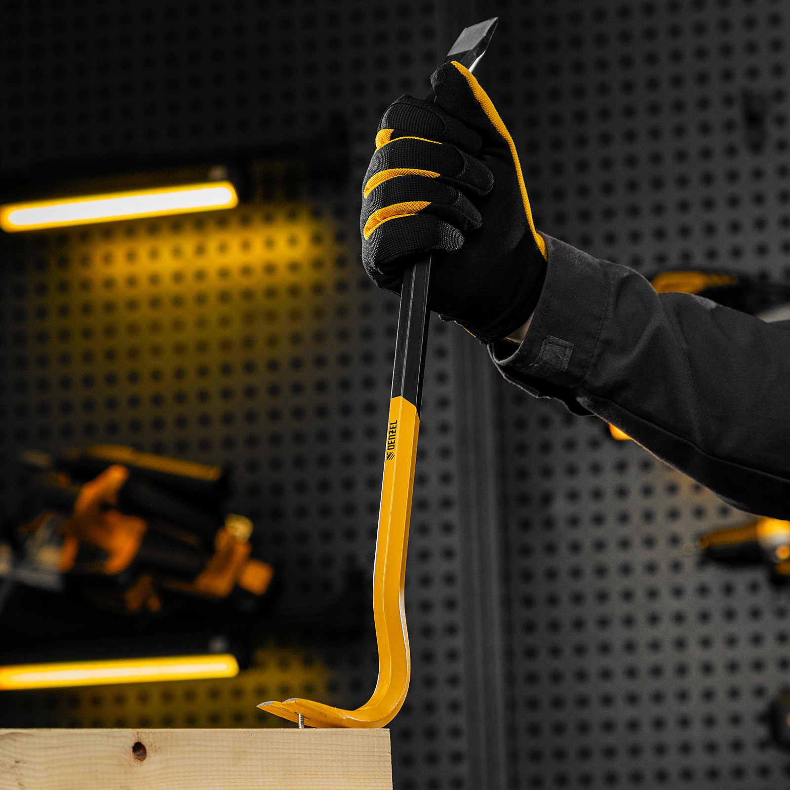 - Яркий цвет — лом-гвоздодер хорошо заметен среди других инструментов.