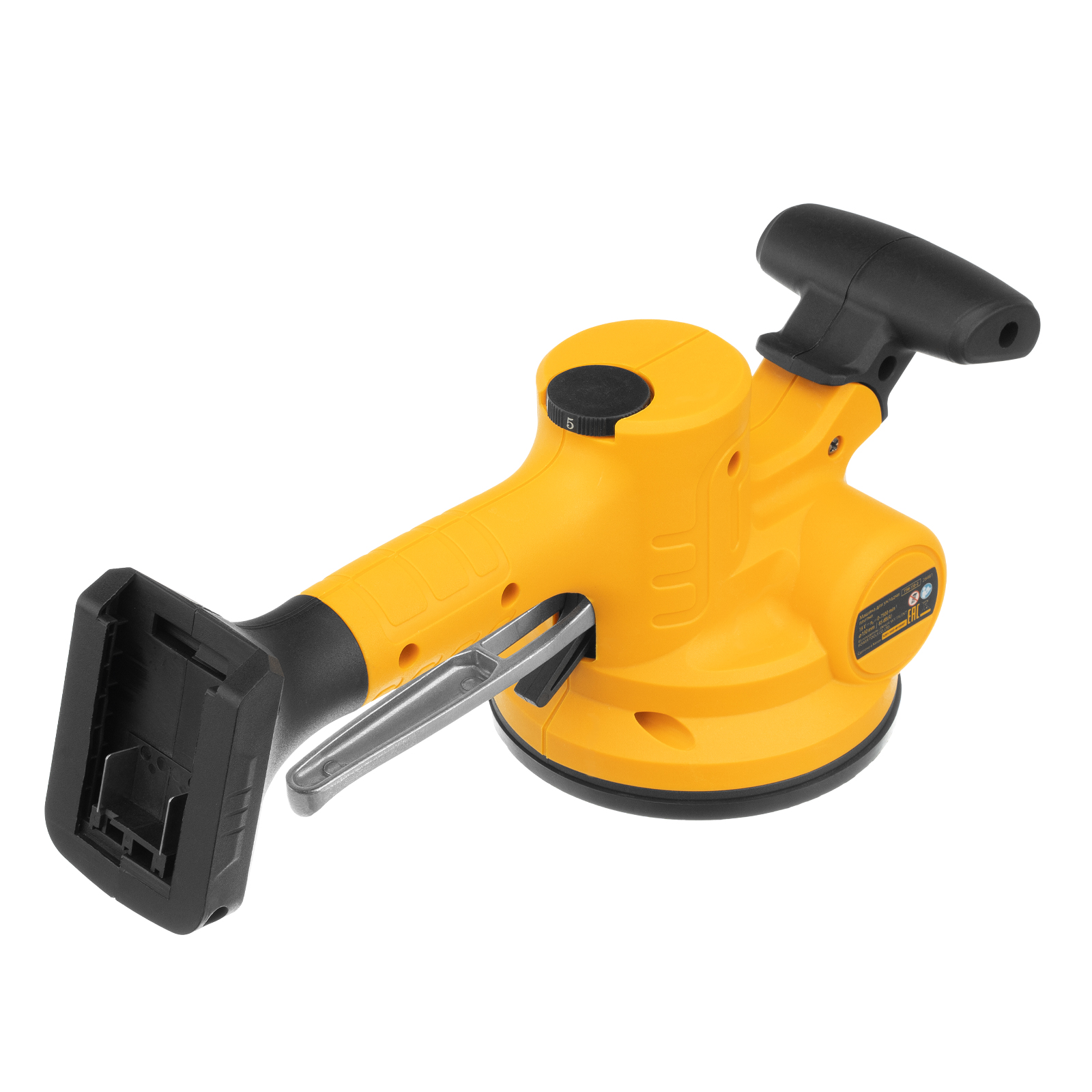 Машина для укладки плитки Denzel TTM-130-0 28481 работает от аккумуляторной батареи Li-Ion емкостью 2 А/ч, с рабочим напряжением 18 В, и используется для проведения облицовочных работ. При помощи присоски диаметром 130 мм оказывает вибрационное воздействие на поверхность плитки со скоростью 500-12000 об/мин, что способствует равномерному распределению клея, а также препятствует образованию воздушных пузырьков и полостей под плиткой, позволяя избежать ее перекоса и повреждения.,Машина поставляется без АКБ и зарядного устройства, на нее можно установить универсальный аккумулятор, совместимый с любым инструментом единой платформы Denzel battery system 18V серии IB.