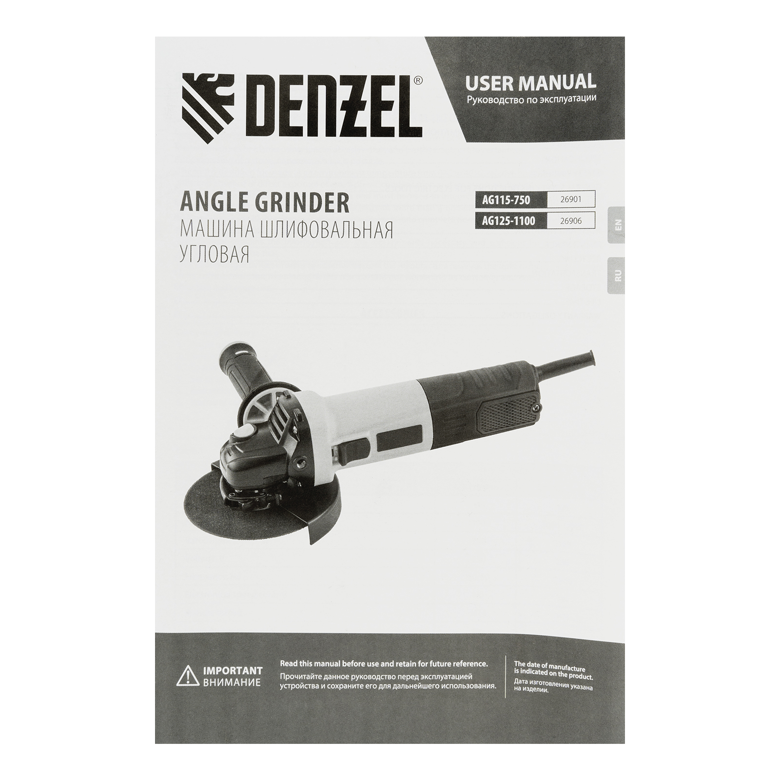 Машина шлифовальная угловая AG115-750, 750 Вт, 115 мм, 11000 об/мин Denzel в Краснодаре